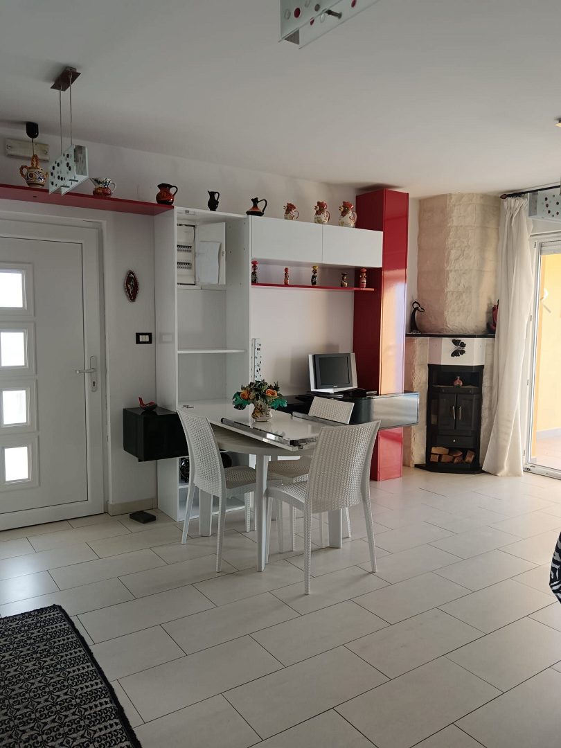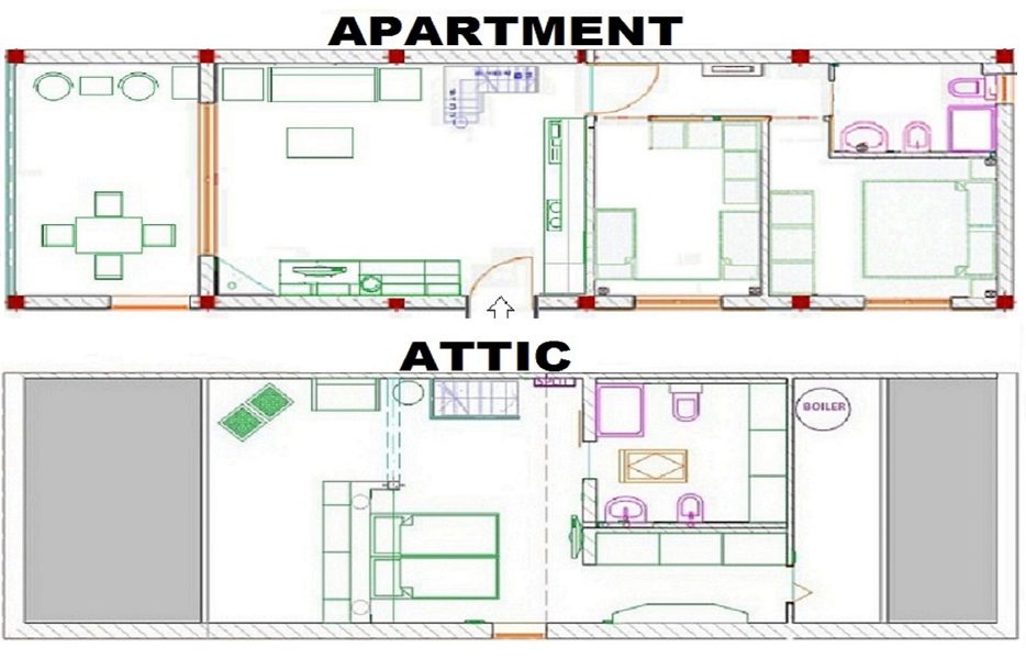 Tento impozantní penthouse se nachází ve druhém patře malé bytové budovy a skládá se ze dvou podlaží, která poskytují pohodlný a funkční obytný prostor. V prvním patře (druhém patře) se nachází kuchyň, obývací pokoj, dvě ložnice a moderní koupelna. Z obývacího pokoje je vstup na prostornou krytou terasu (12 m²) s neuvěřitelným panoramatickým výhledem na moře, ideální pro relaxaci a užívání si přírody. Druhé patro (podkroví) se rozkládá na ploše 53,82 m², kde se nachází otevřený prostor se dvěma samostatnými lůžky, úložný prostor se skříněmi a další koupelna umístěná v nejvyšší části podkroví. Interiér je elegantně zařízený s parketovými podlahami v ložnicích, zatímco zbytek bytu je pokryt kvalitní dlažbou. Obývací pokoj je navíc vyzdoben krbem na dřevo, který dodává bytu teplo a útulnou atmosféru. Pro pohodlný pobyt i během horkých letních dnů je byt vybaven třemi klimatizacemi (dvě v prvním patře a jedna v podkroví). PVC okna s dvojitým zasklením a moskytiérami a polystyrenová tepelná izolace zaručují vysokou energetickou účinnost.