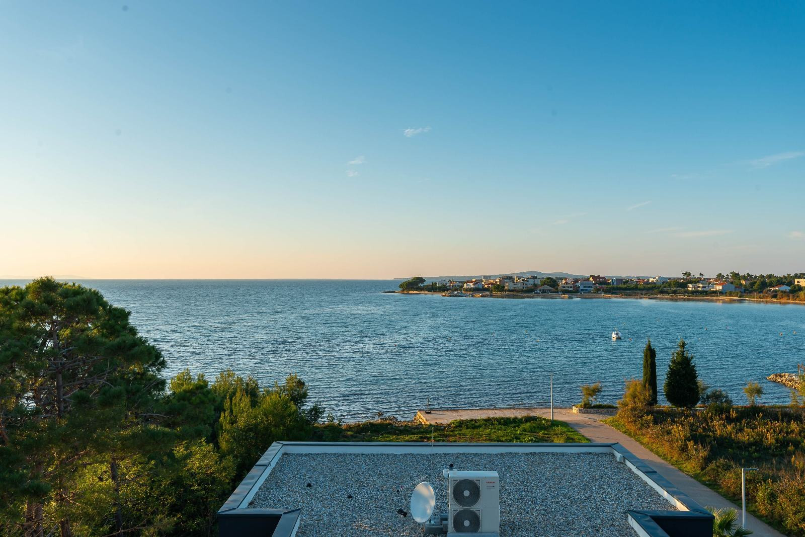 Apartmán má střešní terasu s bazénem a nádherným výhledem na moře a západ slunce. K bytu náleží dvě parkovací místa.