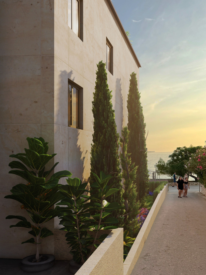 Kryté terasy (5,44 m²) ideální pro relaxaci s výhledem na moře.