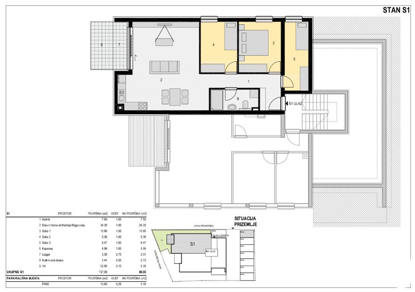 Celková hrubá plocha bytu je 137 m².