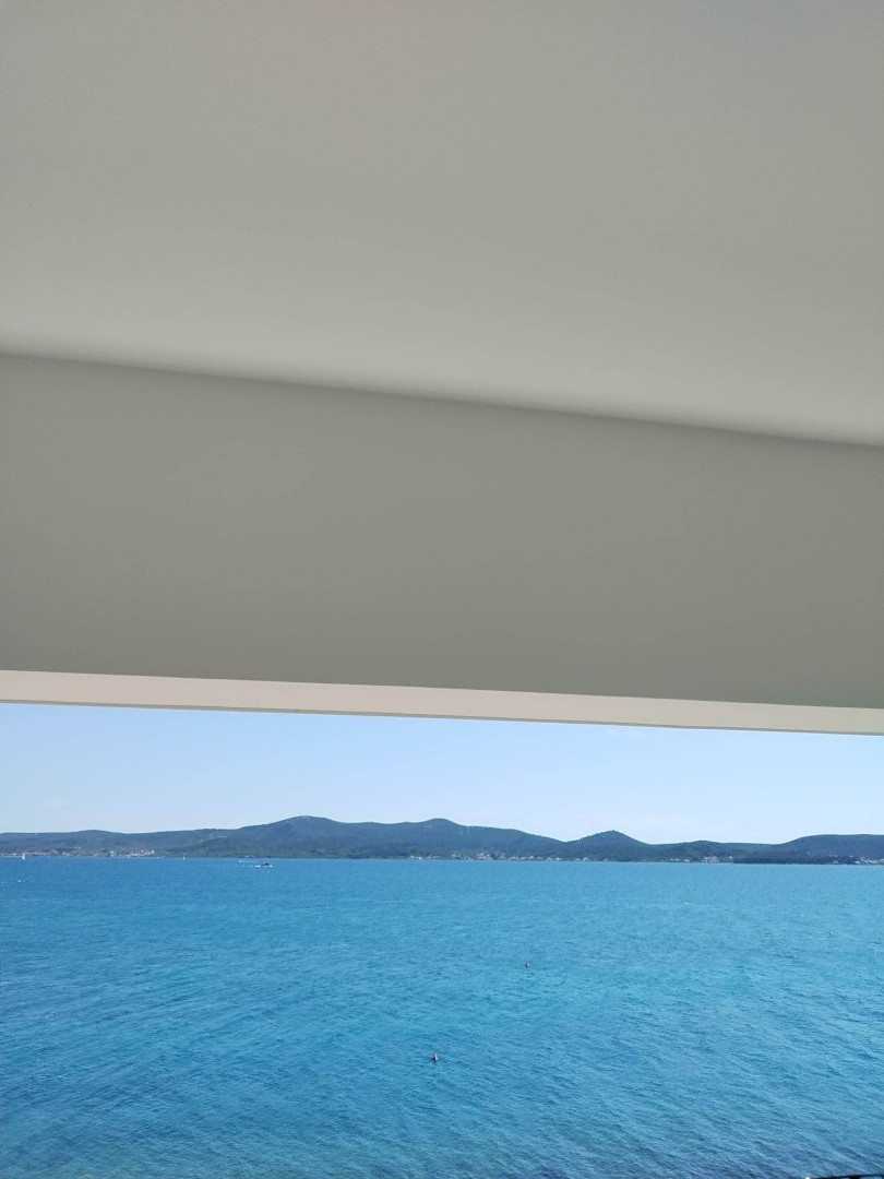 Krásný luxusní byt, který se nachází v první řadě u moře. Byt je kompletně zařízen designovým italským nábytkem. Nachází se v mimořádně žádané lokalitě, u krásné pláže, přímo u moře a od města Zadar je vzdálený jen pár kilometrů, což jej činí ještě atraktivnějším. Byt se nachází v prvním a druhém patře budovy a sestává z obývacího pokoje s jídelnou, kuchyní, tří ložnic, z nichž dvě mají vlastní koupelnu, další koupelny, šatny a předsíně, celková plocha 103 m2 a dvě terasy 44 m2. K bytu náleží střešní terasa s krásným výhledem na město a ostrovy, jedno garážové stání a jedna komora. Celková užitná plocha bytu s příslušenstvím je 218 m2