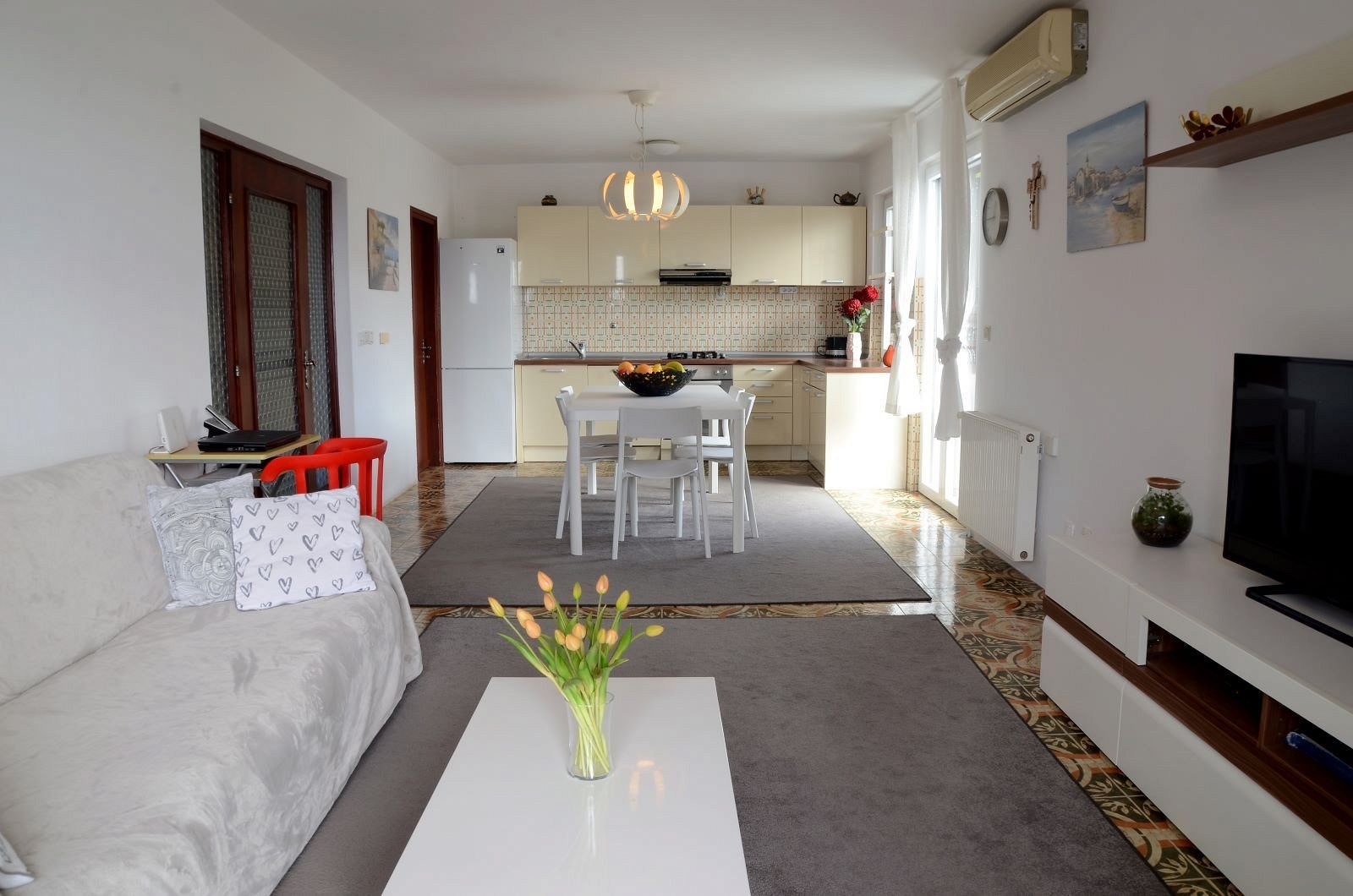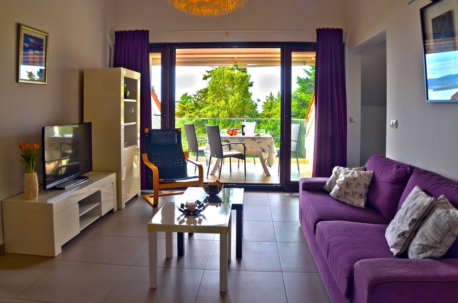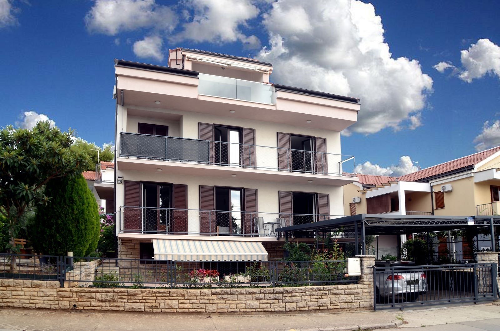 • Podkroví – bytová jednotka (70m2) – obývací pokoj, 2 ložnice, kuchyň, jídelna, koupelna a balkon s krásným výhledem na moře.