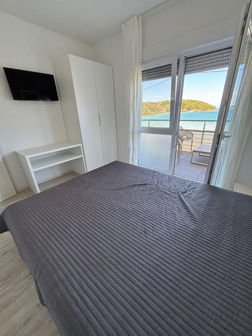 Na prodej je nádherný apartmánový dům o dvou podlažích, umístěný pouhých 10 metrů od moře, v klidné a chráněné zátoce na ostrově Rab. Dům se nachází na výjimečném místě s přímým výhledem na moře a tři malebné ostrůvky, což mu dodává zvláštní kouzlo a exkluzivitu.