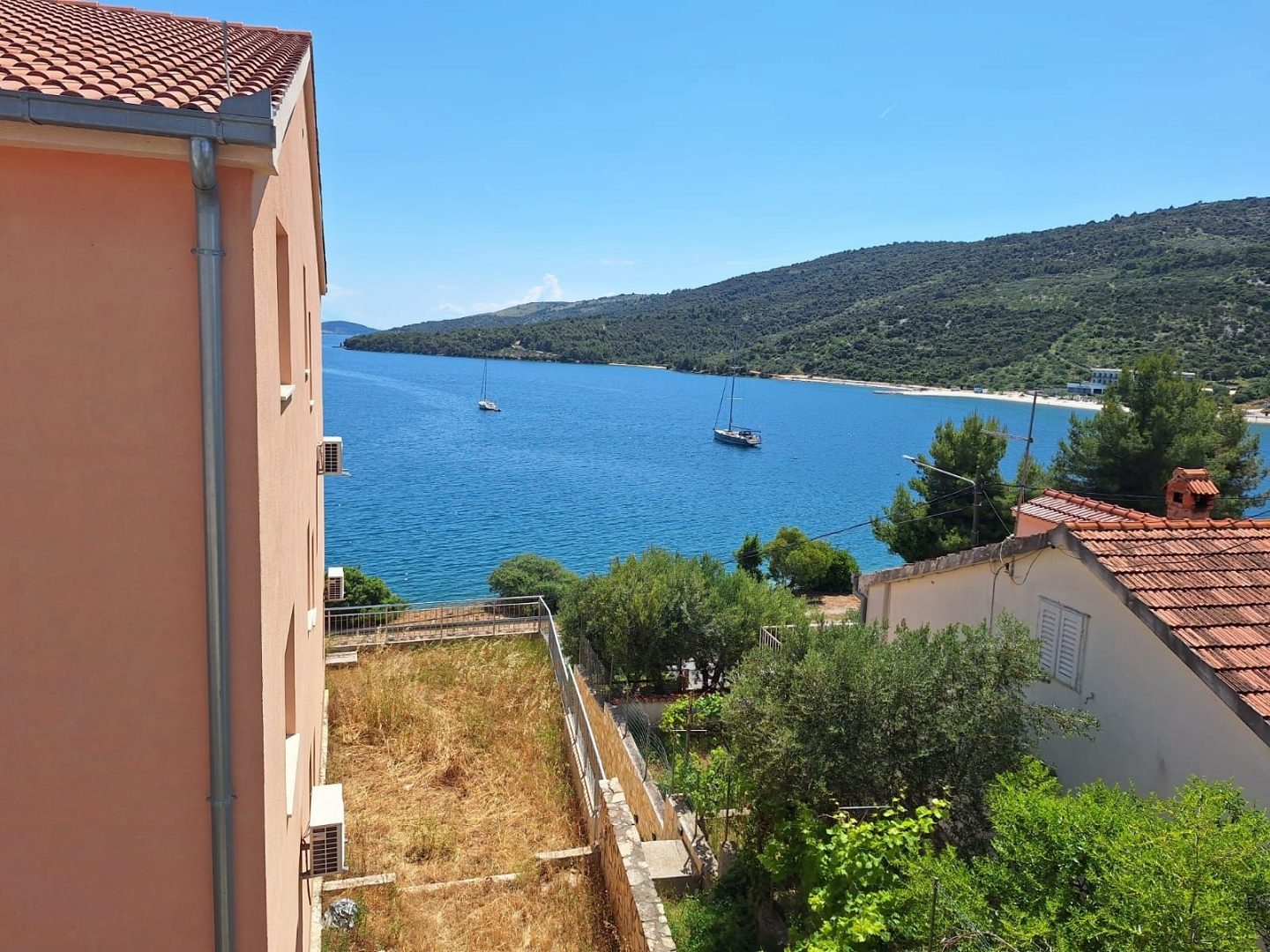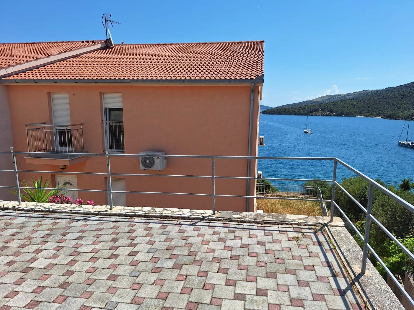 Krásný byt na prodej ve vesnici Marina nedaleko Trogiru, který se nachází v 1. řadě k moři, s krásným výhledem.