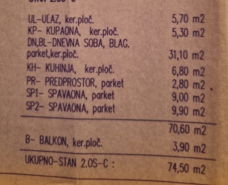 Na prodej byt o velikosti 74,50 m² v Zadaru, městská část Stanovi.