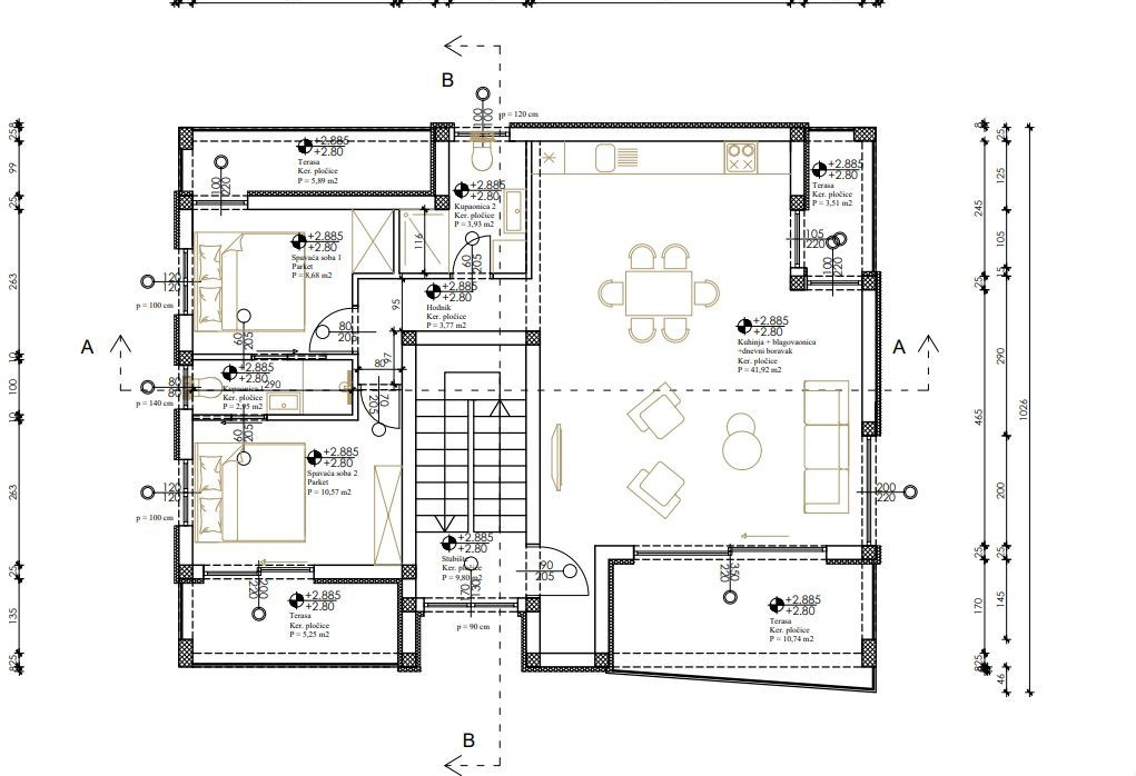 Prodej bytu v prvním patře v novostavbě. Byt má celkovou rozlohu 107,01 m².