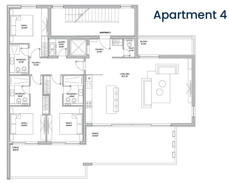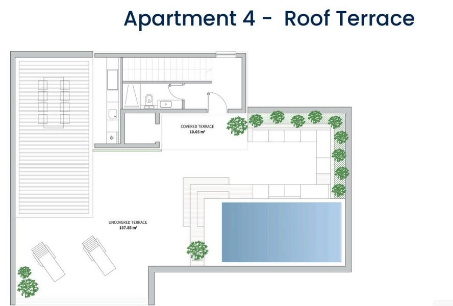 Byty ve druhém patře mají střešní terasu s možnými přístavbami (nekonečný bazén, sprcha, letní kuchyň, bioklimatická pergola)