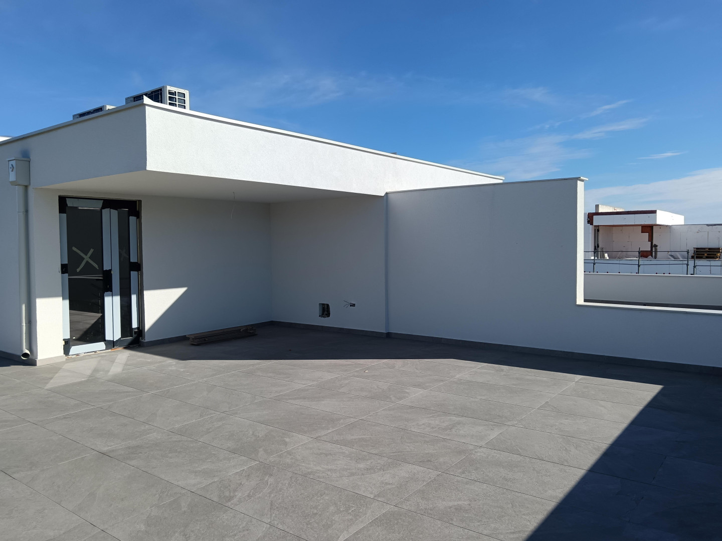 Prostorná otevřená kuchyně, jídelna a obývací pokoj (27 m²) Dvě ložnice (14 m² a 12 m²) Koupelny (6 m²) Terasy (9,7 m²)