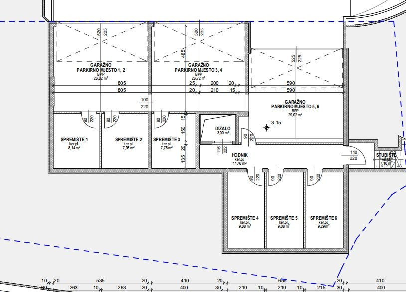 sklepní kóje v suterénu budovy,