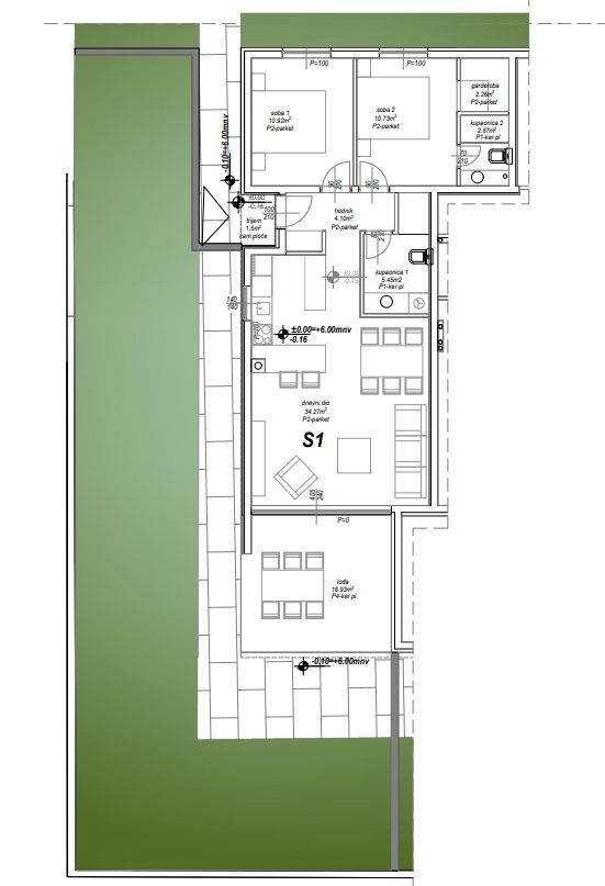 Prostorný byt 2+1 (S1) v přízemí novostavby v Privlace, v bezprostřední blízkosti Zadaru, je na prodej. Celková plocha bytu s příslušenstvím je 100,09 m². Byt se nachází v domě s 10 bytovými jednotkami, který se nachází ve druhé řadě od moře. Vstup do objektu je soukromý, oplocený a zabezpečený přístupovým systémem s kódem nebo kartou, což majitelům zajišťuje naprosté soukromí a bezpečí.