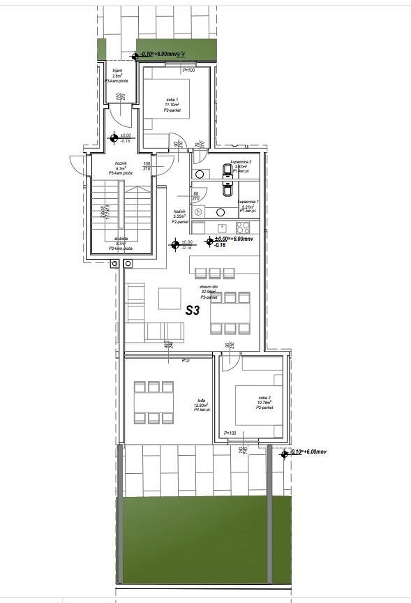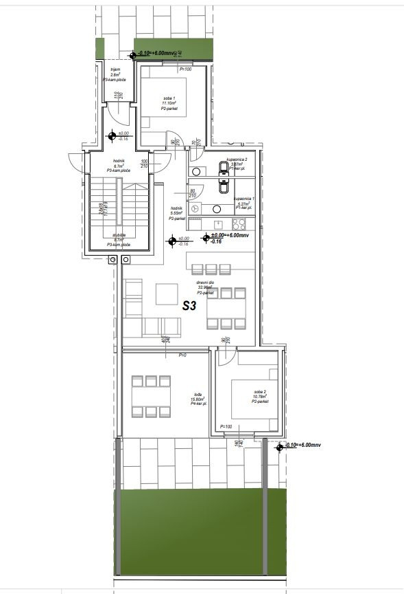 Prostorný byt 2+1 (S3) v přízemí novostavby v Privlace, v bezprostřední blízkosti Zadaru, je na prodej. Celková plocha bytu s příslušenstvím je 87,86 m². Byt se nachází v domě s 10 bytovými jednotkami, který se nachází ve druhé řadě od moře. Vstup do objektu je soukromý, oplocený a zabezpečený přístupovým systémem s kódem nebo kartou, což majitelům zajišťuje naprosté soukromí a bezpečí.