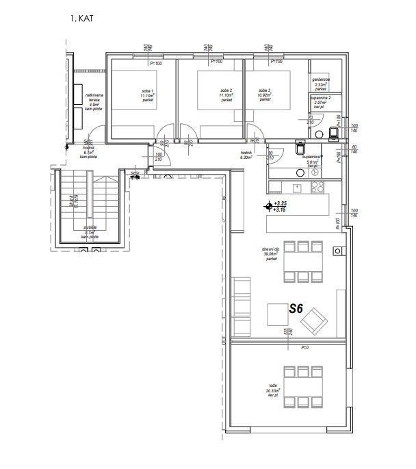 Prostorný byt 3+1 (S6) je na prodej v prvním patře novostavby v Privlace, v bezprostřední blízkosti Zadaru. Celková plocha bytu s příslušenstvím je 107,13 m². Byt se nachází v domě s 10 bytovými jednotkami, který je postaven ve druhé řadě od moře. Vstup do objektu je soukromý, oplocený a zabezpečený přístupovým systémem s kódem nebo kartou, což majitelům zajišťuje naprosté soukromí a bezpečí.