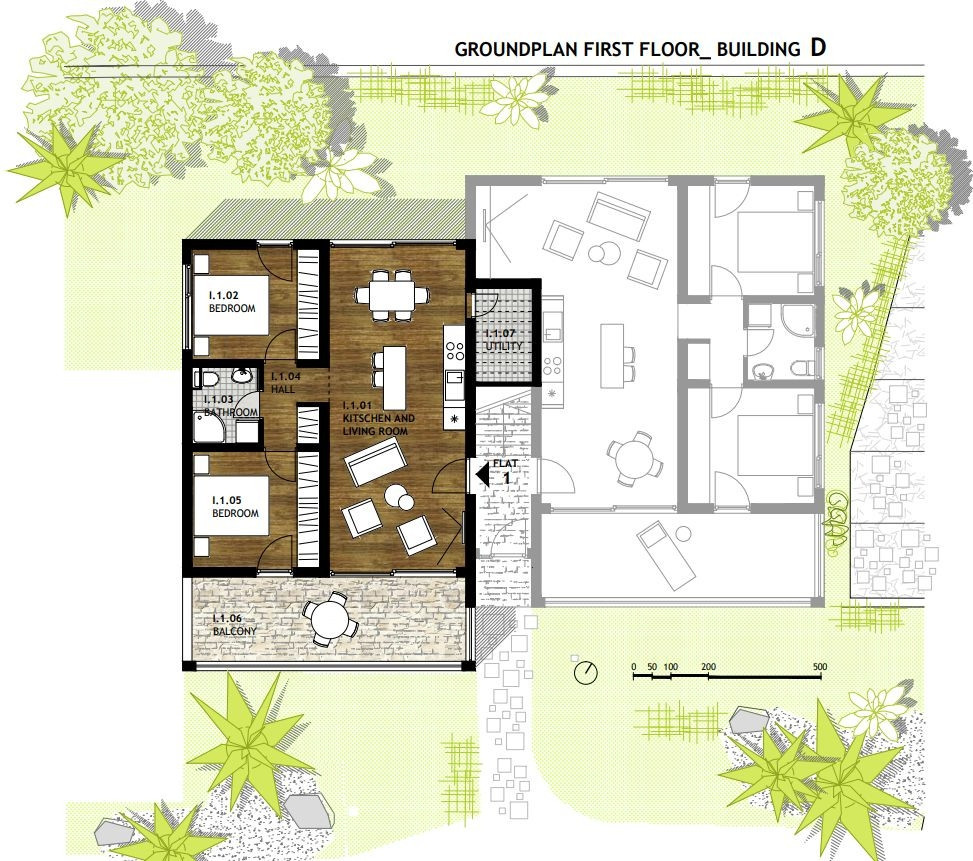 Na prodej je atraktivní apartmán F1 v přízemí malé budovy s pouhými čtyřmi bytovými jednotkami, který se nachází přímo u moře v krásném Sabunike.