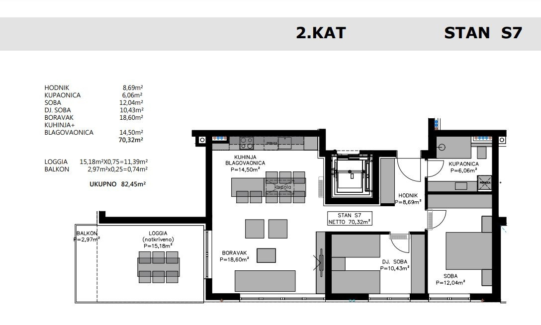 Krásný nově zrekonstruovaný byt v Privlaka, který se nachází pouhých 200 metrů od moře a pláže, ve druhém patře moderní budovy s výtahem. Byt se skládá z: