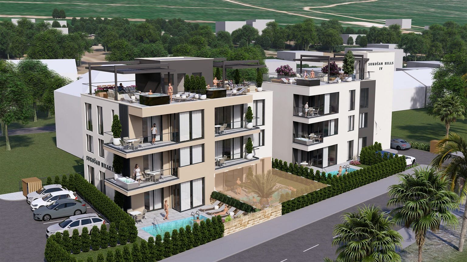 Vítejte v novém projektu v Sukošanu, oáze luxusu a pohodlí na krásném pobřeží Jaderského moře. Tyto apartmány se nacházejí v první řadě u moře a představují směs elegantního designu, nádherných výhledů a špičkového vybavení. Projekt tvoří tři luxusní rezidenční domy s byty o velikosti 50-150 m2 a jsou kombinací elegance a špičkového vybavení zajišťujícího vysoký standard bydlení. Tento komplex se nachází v idylickém Sukošanu a nabízí ničím nerušený výhled na křišťálově čisté moře a krásné západy slunce, což vytváří dokonalou atmosféru pro bydlení i dovolenou.