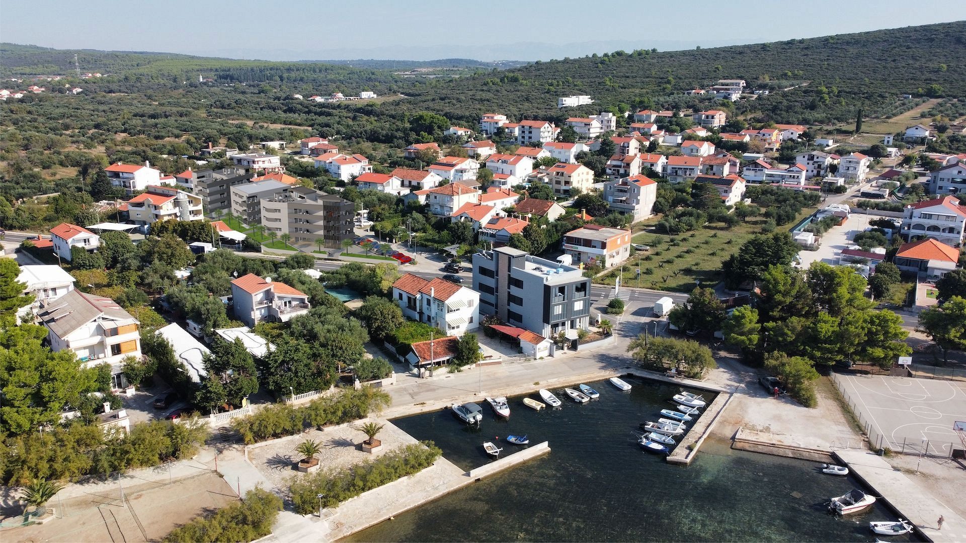 Objevte ideální místo pro život nebo dovolenou v srdci Sukošanu, klidném místě v zátoce Zlatna luka, pouhých 10 km jihovýchodně od Zadaru. Nabízíme k prodeji moderně řešený byt o velikosti 99,95 m², který se nachází v novostavbě pouhých 100 metrů od moře. Tento apartmán nabízí mimořádný výhled na moře téměř z každého pokoje a pláže jsou jen 2 minuty chůze. Byt se skládá z obývacího pokoje propojeného s kuchyní, toalety, tří ložnic, dvou koupelen, zastřešeného balkonu (21,38 m2), střešní terasy (99,66 m2) a zahrnuje jedno parkovací místo. Energetický certifikát A+ zaručuje špičkovou energetickou účinnost. Byty jsou vybaveny kvalitními plastovými okny a dveřmi s elektrickými ALU roletami a rolovacími sítěmi proti hmyzu, dále moderní elektroinstalací a LED osvětlením. Vytápění a chlazení je zajištěno kvalitními klimatizačními zařízeními.