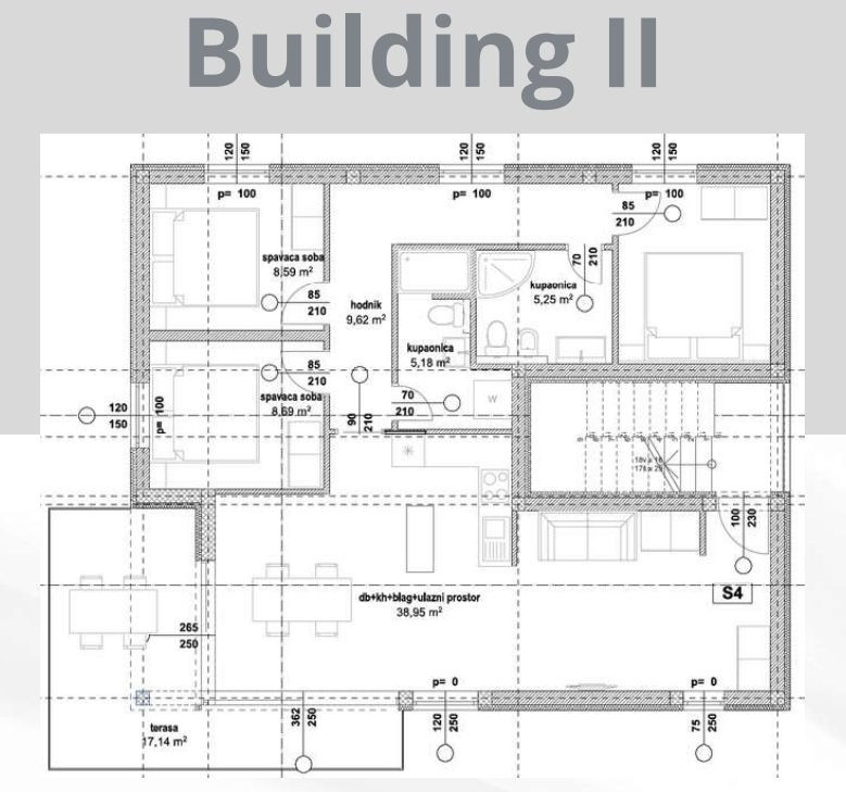 Představujeme vám exkluzivní rezidenční projekt v jedné z nejžádanějších lokalit na ostrově Vir - druhá řada u moře, hned vedle oblíbené pláže! Nabízíme 3 moderní budovy s celkem 12 luxusními apartmány - 4 v každé budově (2 v přízemí, 1 v 1. patře a 1 ve 2. patře). Horní apartmány mají také soukromé střešní terasy s úchvatným výhledem.