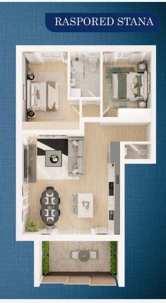 Vstupní haly, Otevřený prostor kuchyně, jídelny a obývacího pokoje, Předsíň, Ložnice 1, Ložnice 2, Koupelna, Toaleta, Lodžie