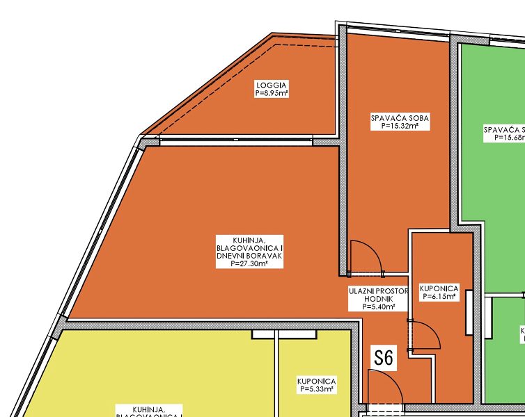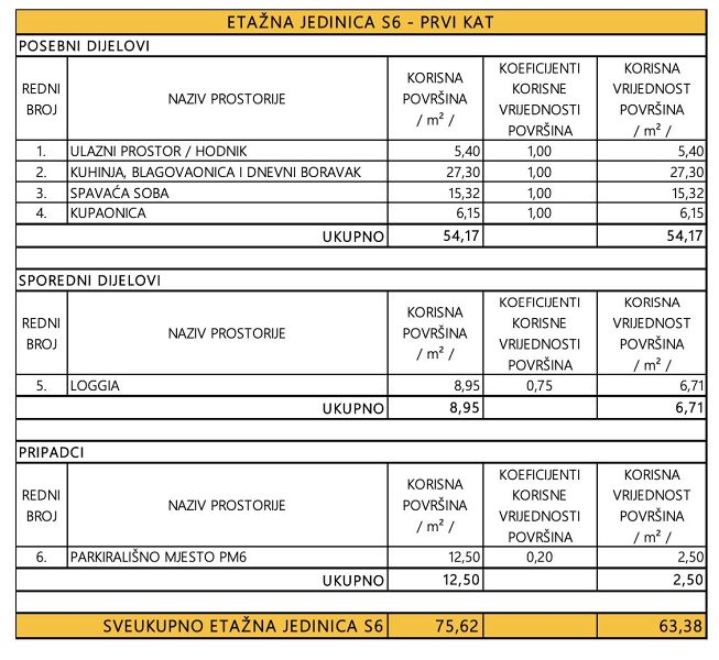 Prostorné a elegantně navržené apartmány s neuvěřitelným výhledem na moře. Prostorný byt s označením S6 se nachází v 1. patře a má rozlohu 63 m2, sestává z prostorné ložnice, koupelny, otevřeného obývacího pokoje s jídelnou a kuchyní a vstupu na velkou lodžii 8,95 m2. Kvalitu konstrukce zaručují špičkové materiály a nejkvalitnější keramika. Užijte si luxusní bydlení s krásným výhledem na moře a přístupem na písečnou pláž. Plánované dokončení prací je naplánováno na konec roku 2024, prodej a rezervace probíhají.