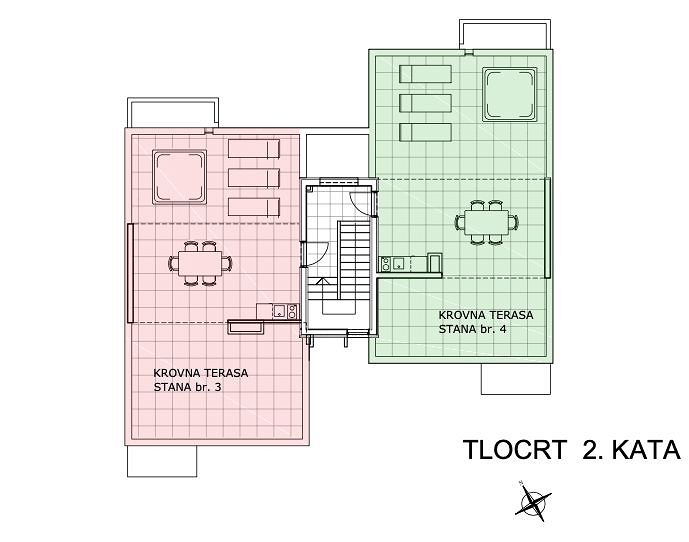 Nabízíme k prodeji luxusní apartmány v rezidenčním domě nacházejícím se pouhých 50 metrů od moře, s krásným panoramatickým výhledem na moře a horu Velebit. Budova se skládá ze 4 bytů: - **Suterén:** Prostorné garáže - **Přízemí:** Dva dvoupokojové byty s přilehlými zahradami - **1. Patro:** Dva apartmány s vlastními střešními terasami a nádherným výhledem na moře a Velebit Apartmán S4 Penthouse - 107,49 m2, sestává ze dvou balkonů, koupelny, WC, dvou ložnic, obývacího pokoje s kuchyní a jídelnou. K bytu náleží velká, prostorná garáž v suterénu domu, plocha garáže je 24,21 m2 a velká střešní terasa 68 m2, která nabízí nádherný výhled na moře a hory. Popis vybavení: - 10 cm izolace z minerální vlny - parkety a prvotřídní keramika - Vytápění a chlazení přes multi split systém - klimatizace ve všech místnostech - el. rolety -podlahové vytápění v koupelnách -bezpečnostní dveře **Termín dokončení:** Léto 2025. Jedinečná příležitost investovat do nemovitosti v atraktivní lokalitě, která nabízí dokonalé spojení komfortu a přírodních krás.