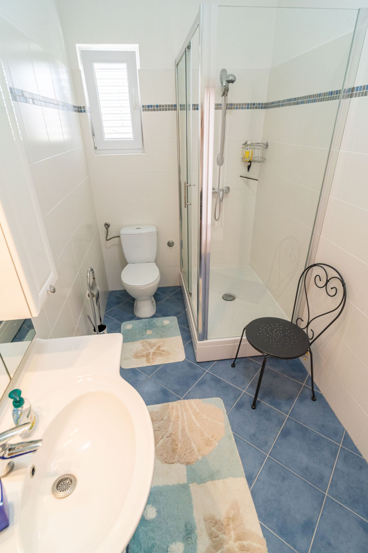 V prvním patře jsou tři další ložnice, každá s vlastní koupelnou a toaletou. Některé z pokojů a terasy v přízemí nabízejí nádherný výhled na moře a ostrov Ugljan.