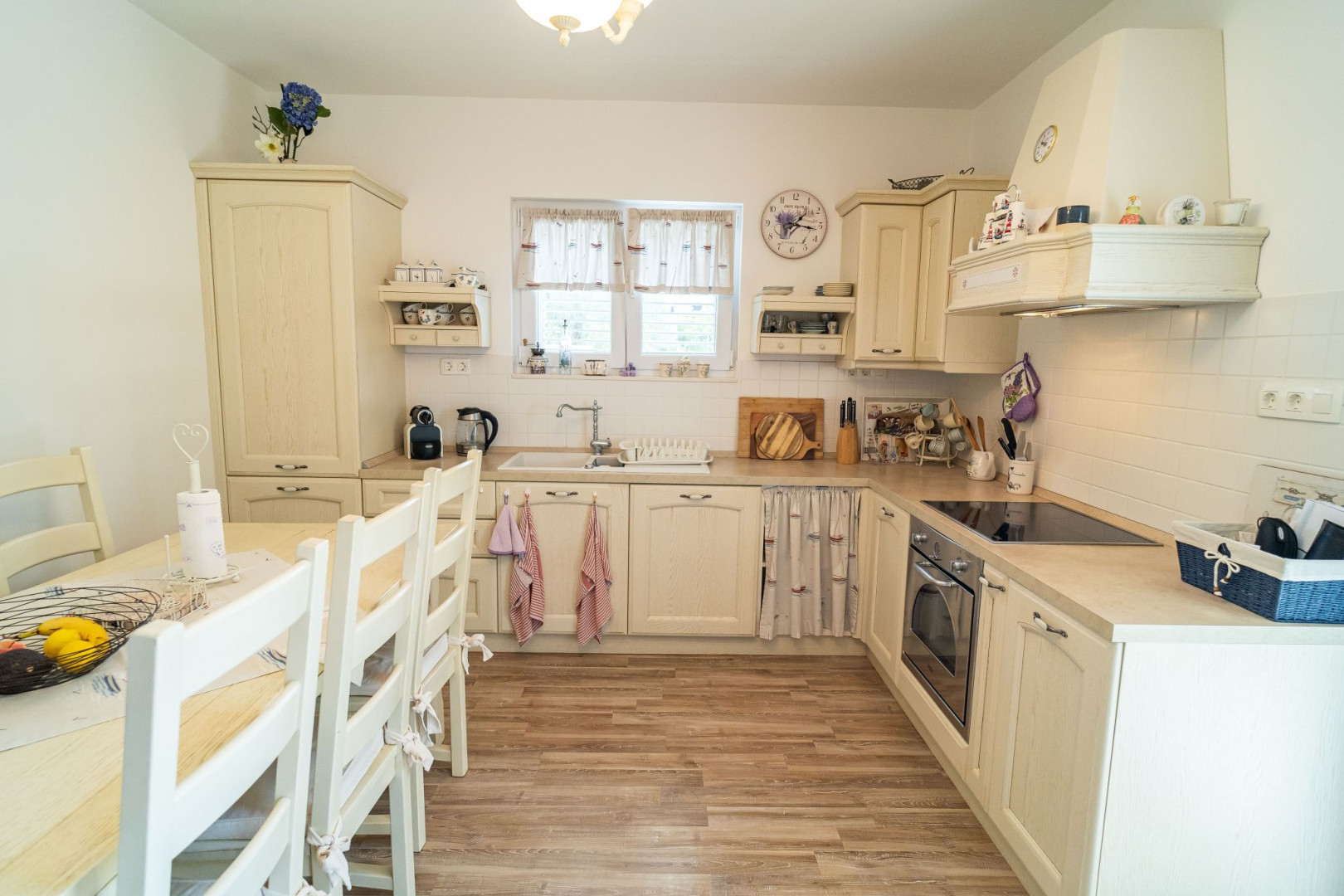 V přízemí se nachází prostorná vstupní chodba, která ústí do komfortního obývacího pokoje propojeného s moderní kuchyní a jídelním koutem. Z této části je přímý vstup na zimní terasu. Dále se v přízemí nacházejí dvě ložnice a dvě koupelny.