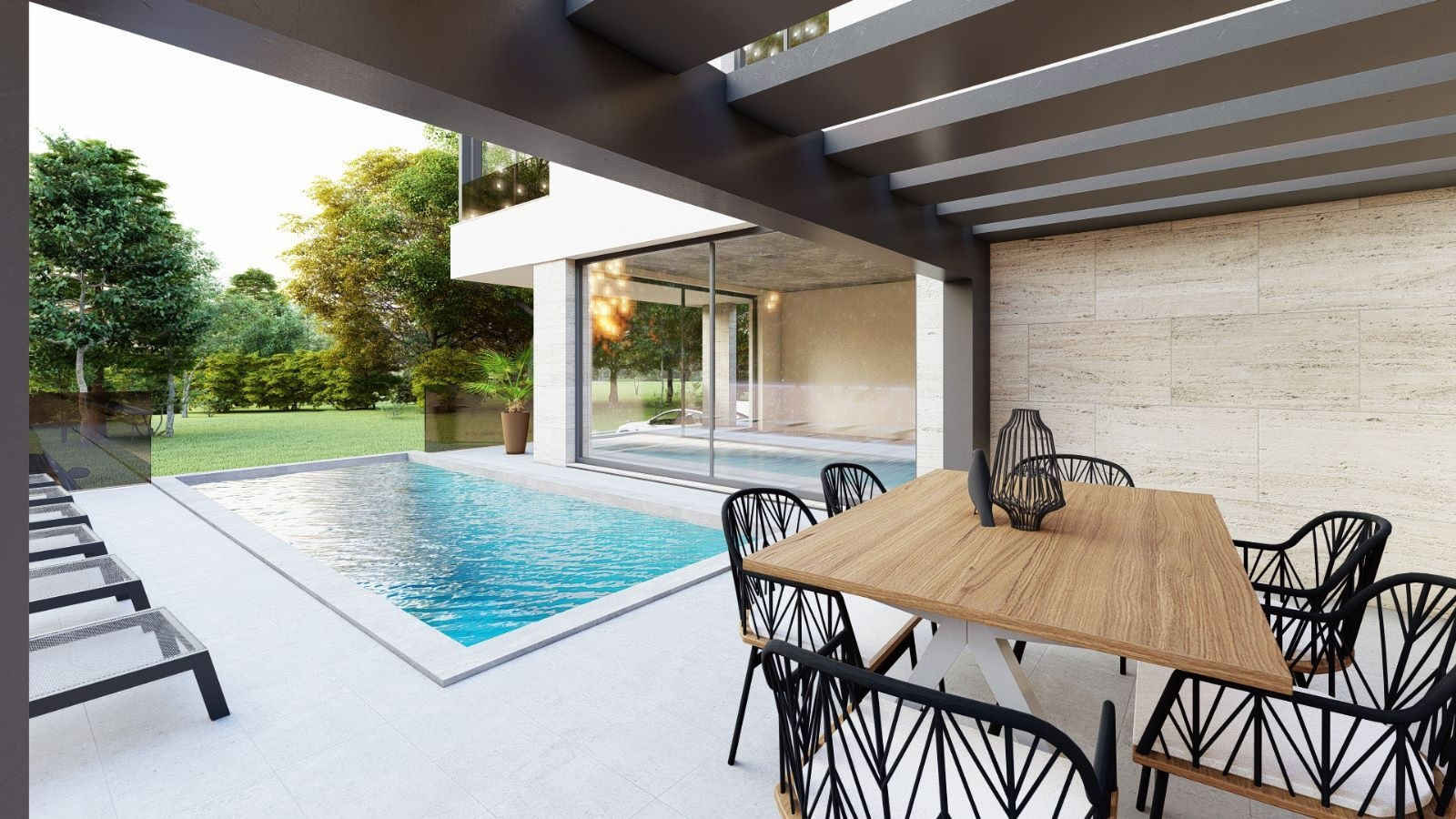Výjimečná rozestavěná vila je na prodej. Krásná, moderní vila na krásném ostrově Vir v oblasti Lozice spojuje funkčnost s luxusem a nabízí dokonalý prostor pro pohodlné bydlení s krásným venkovním prostorem pro relaxaci a zábavu. Vila je navržena s moderními architektonickými prvky, kombinující čisté linie, neutrální tóny a špičkové materiály. Tato moderní vila, každá s vlastní obytnou plochou 142 m2, se nachází v klidné a tiché lokalitě na ostrově Vir. Mezonetová vila kombinuje současný minimalistický design s hřejivými prvky a nachází se na pozemku o rozloze 711 m2 v mírném svahu s krásným výhledem na Jaderské moře. Velká okna a prosklené stěny poskytují dostatek přirozeného světla a propojují interiér s exteriérem. Vily jsou postaveny na dvou podlažích, přízemí a prvním patře. Interiér vily je prostorný a vzdušný. V přízemí je otevřený prostor kuchyně, jídelny, obývacího pokoje, komory a toalety. Velká skleněná posuvná stěna vede k 17 m2 vyhřívanému bazénu obklopenému lehátky a krytými odpočinkovými terasami, což vytváří dokonalou kombinaci vnitřního a venkovního prostoru pro socializaci a relaxaci. Plovoucí schodiště se skleněným zábradlím vede do prvního patra, kde jsou tři ložnice, každá s vlastní koupelnou. Vily jsou postaveny s pevnou, vyztuženou konstrukcí a vyplněny tepelnými bloky. Zateplená fasáda, 8 cm polystyren. Instalovány jsou špičkové hliníkové okna a dveře s moskytiérami a kvalitními bezpečnostními vstupními dveřmi. Pro výzdobu interiéru jsou také použity nejkvalitnější materiály, které jsou v současnosti na trhu. Podlahové krytiny: prvotřídní italská keramika, prvotřídní parkety. Podhledy s kvalitním designovým LED osvětlením, výška stropu 2,65m. Interiérové dveře se skrytými panty a magnetickým zámkem. Sanitární keramika 1. třídy (Duravit nebo Laufen) Podlahové vytápění. Chlazení pomocí split-systémové klimatizace s venkovními jednotkami na střeše. Orientace vil je Jihozápad - Severovýchod Zahrada kolem vily bude pečlivě upravena zelenou trávou, středomořskými rostlinami, palmami a květinovými záhony. Každá vila má tři parkovací místa a jednu vestavěnou nabíječku pro elektromobily. Nabídka zahrnuje každou vilu samostatně nebo koupě obou vil. Plánovaný termín dokončení všech prací je březen 2024. Vila je ideální pro ty, kteří chtějí opravdovou dovolenou v klidném prostředí a přitom mít na dosah malebné místo, které kypí životem po celý rok a zejména v sezóně. Ostrov Vir se nachází severozápadně od města Zadar a je spojen s pevninou mostem.