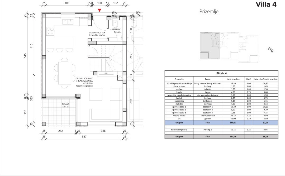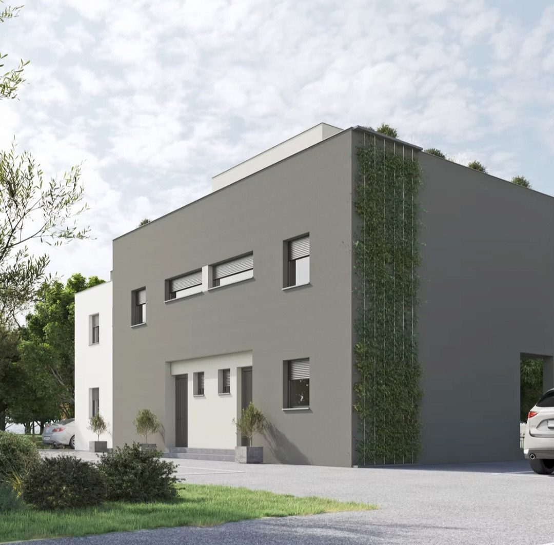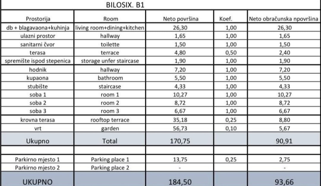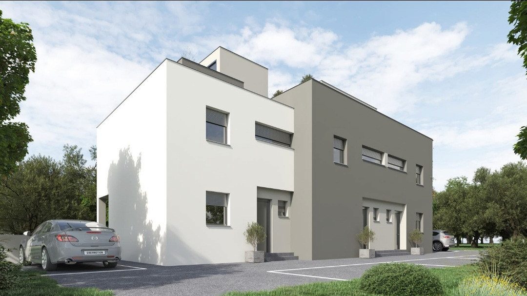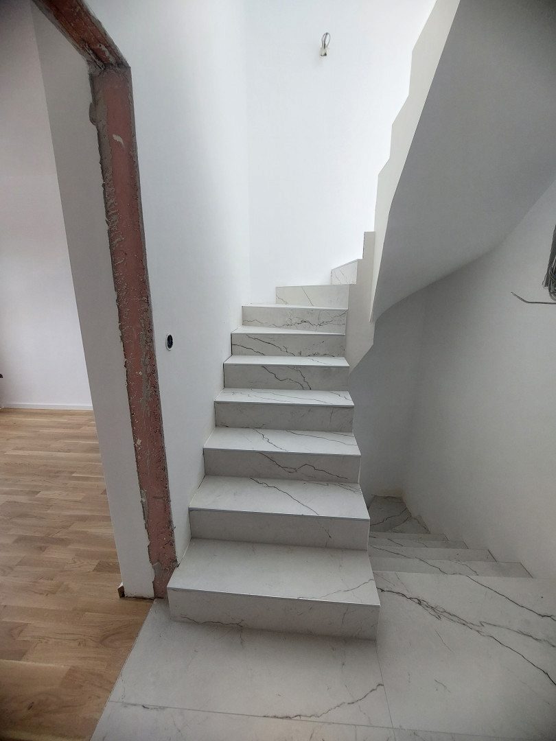 Na prodej moderní dvoupodlažní dům v malém komplexu tří domů, kombinující pohodlí rodinného domu a funkčnost bytu s vlastním dvorem a střešní terasou s výhledem na moře.