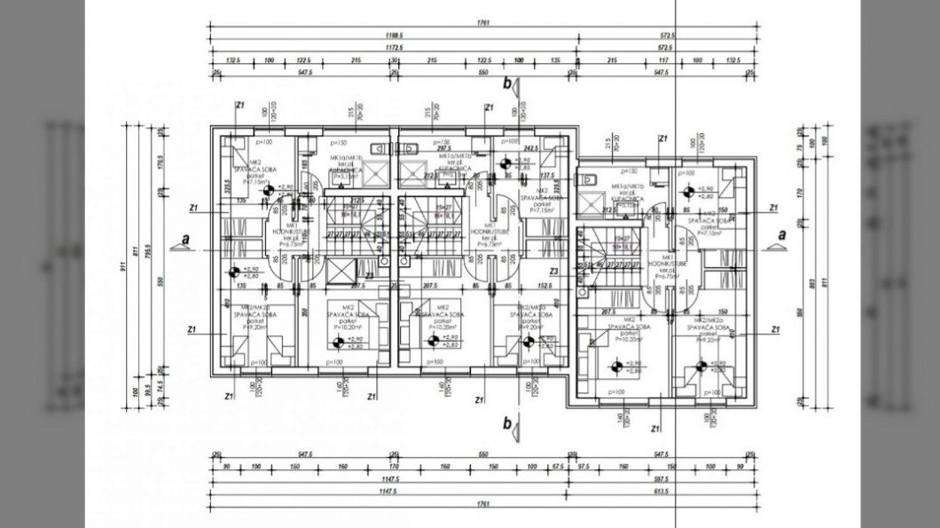 - Železobetonová konstrukce, nosné zdi z cihel 25 cm