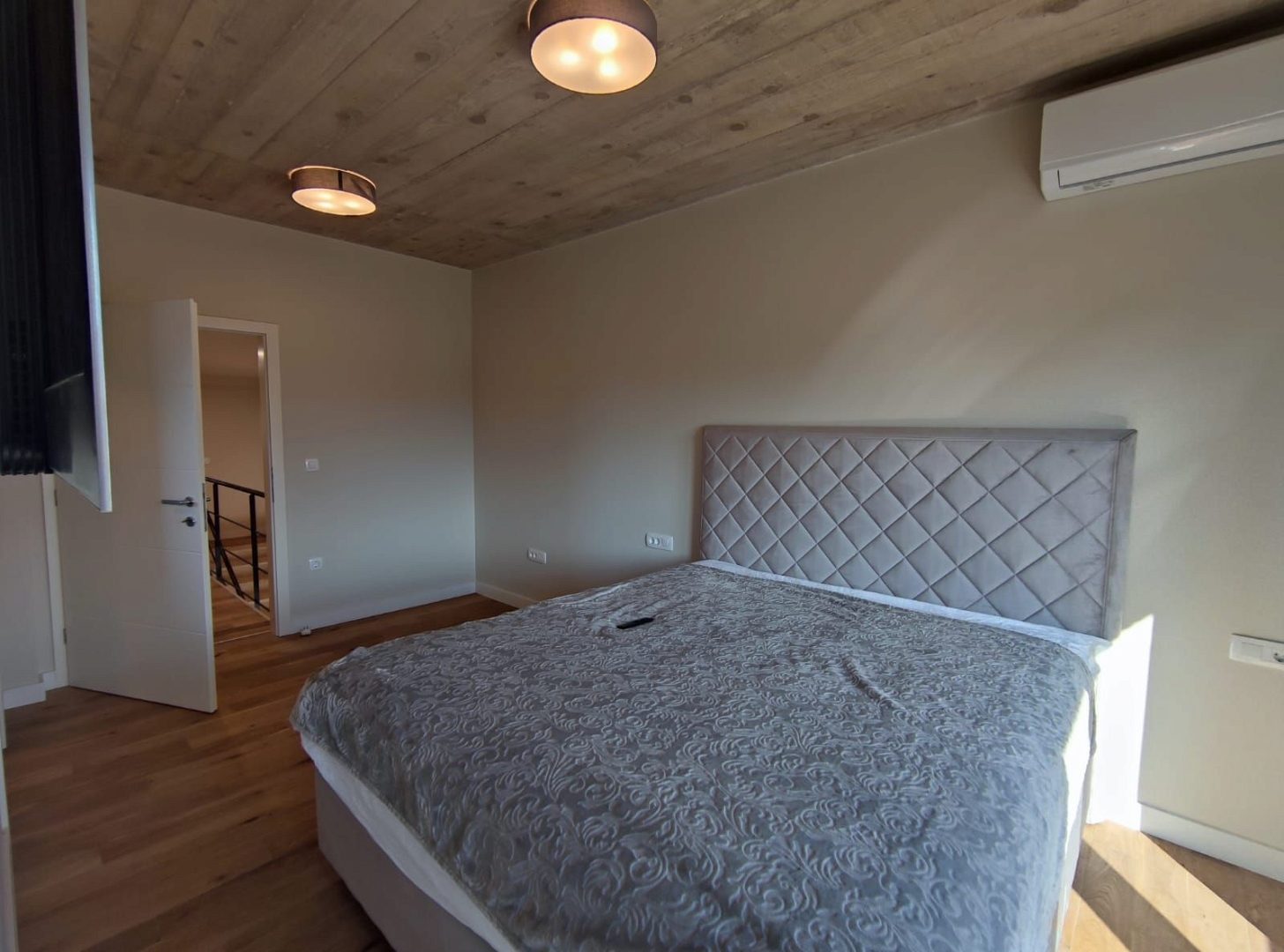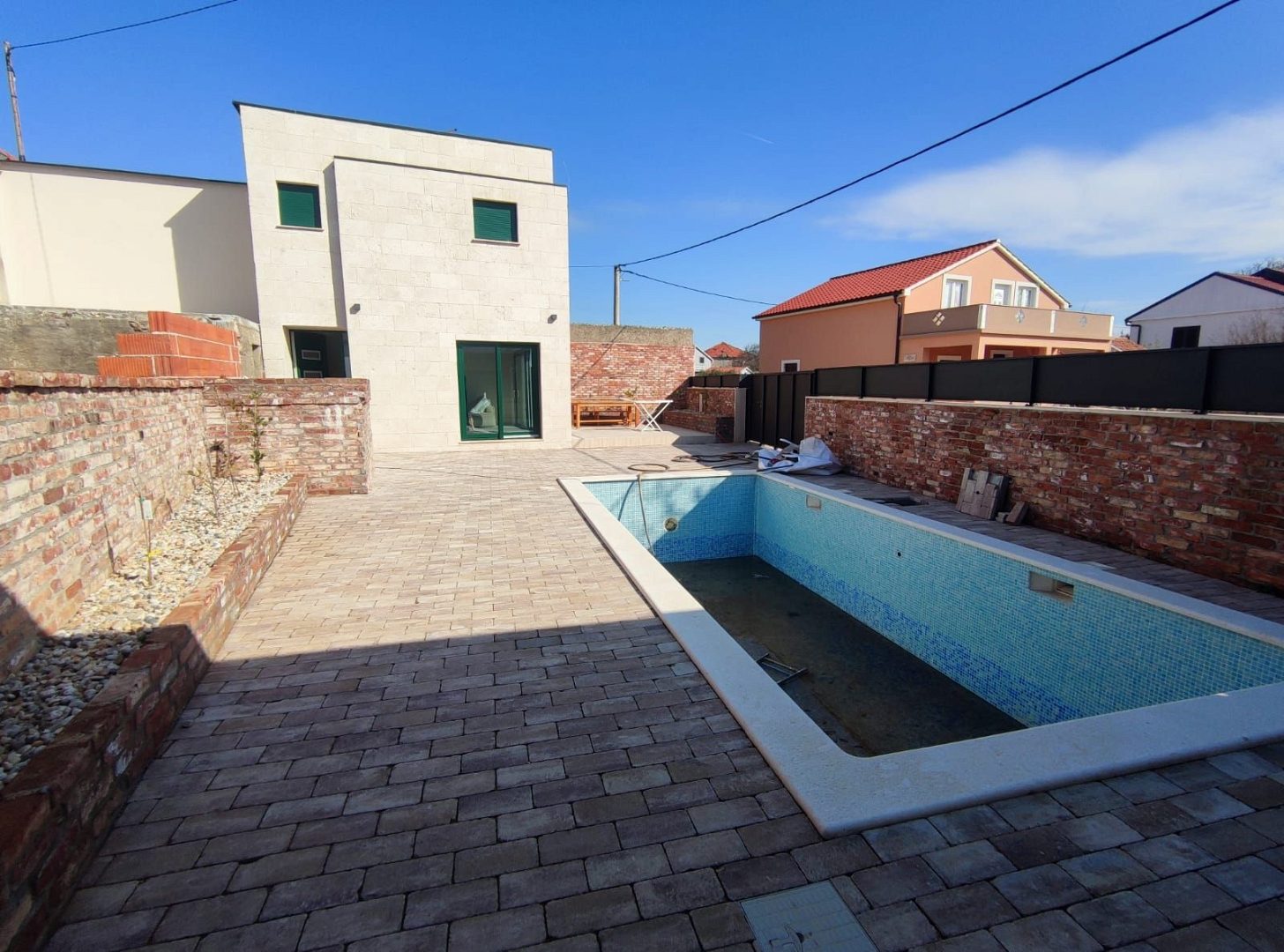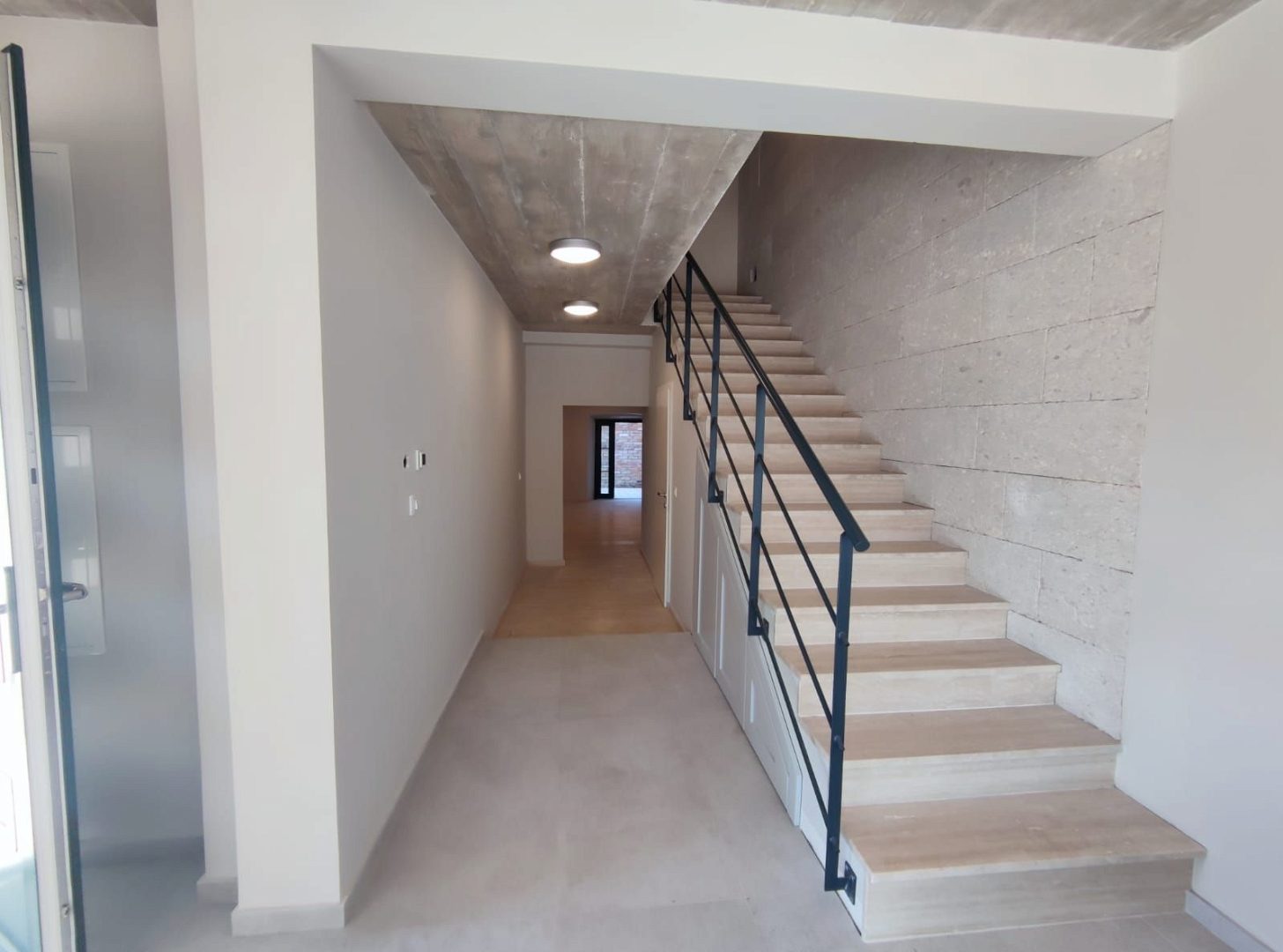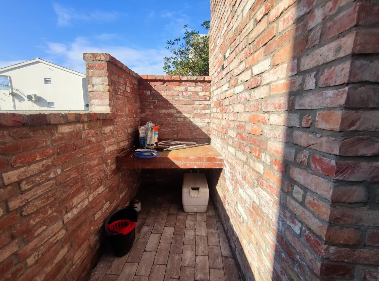 Dům se skládá ze dvou podlaží a samostatné vedlejší budovy 18 m2 co by letní kuchyně. Přízemí tvoří obývací část s pohodlným obývacím pokojem, jídelnou a kuchyní, ze které se vstupuje na dvorek s krbem na grilování. Ústředním prvkem interiéru je vnitřní schodiště obložené bračským kamenem, které vede do prvního patra, kde jsou dvě prostorné ložnice, každá s vlastní elegantně zařízenou koupelnou. Rustikální detaily, jako je cihlová zeď v kuchyni a betonové stropy potažené ochrannou vrstvou, vytvářejí autentickou atmosféru. Zvláštní pozornost byla věnována kvalitě provedení a komfortu - dům je výborně zateplen, vybaven podlahovým vytápěním a klimatizací ve všech místnostech. Na nádvoří se nachází bazén obklopený cihlovou zdí, která poskytuje intimitu s jídelním koutem a venkovní sprchou. Letní kuchyně, která se nachází v samostatné budově, s kamennými deskami a tradičním dalmatským stylem, dále dodává kouzlo této nemovitosti.