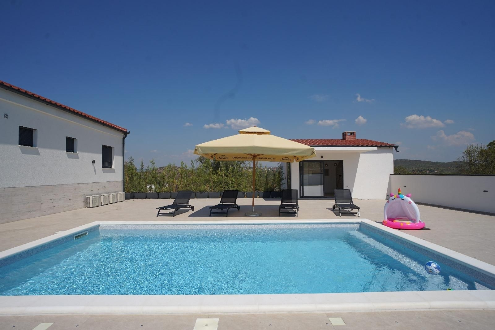 Krásný středomořský rekreační dům je na prodej ve vesnici Donja Jagodnja, která se nachází ve vnitrozemí mezi Biogradem na Moru a dálnící A1. Tento luxusní dům s bazénem a letní kuchyní, který se nachází na působivém pozemku o rozloze 5000 m2, Vám poskytne jedinečnou atmosféru klidné relaxace. Intimitu domu chrání rozlehlý okolní pozemek a přední přístup z již tak málo frekventované uličky chrání vysoký matný plot. Celý pozemek je rozparcelován a nachází se ve stavební zóně a jako taková další výhoda pro budoucího investora k výstavbě více domů nebo doplňkového zázemí ke stávajícímu domu. Obytná část domu se nachází v jedné úrovni zvýšeného přízemí a skládá se z: kuchyně, jídelny, obývacího pokoje, chodby, koupelny, hlavní ložnice s koupelnou , druhé ložnice, lodžie 22 m2, terasy 10 m2 Všechny pokoje jsou vybaveny špičkovými klimatizačními jednotkami Mitsubishi pro vytápění a chlazení, v obývacím pokoji je instalován krb pro přitápění. V suterénu jsou dva sklady, jeden 12 m2 a druhý 8 m2, a garáž s elektrickými rolovacími vraty pro dva vozy. Před garáží je prostor pro další tři auta a vjezd do dvora a garáže jsou posuvnými vraty na dálkové ovládání. V zadní části prostorného dvora je k dispozici bazén 8 x 4,5 m s hydromasážními tryskami a letní kuchyně 22 m2 s krbem a toaletou pro příjemné posezení. Pro komunikaci a bezpečnost byl instalován video interkom a video vrátný. Při stavbě domu bylo dbáno na špičkovou kvalitu jak hrubých stavebních prací, pevnosti, statiky, izolace (celkem 40 cm tloušťky stěn), odvodnění terénu, tak i dokončovacích prací s použitím kvalitních materiálů. Tento dům zaujme svou jednoduchostí, funkčností a klidem, který ho obklopuje. Donja Jagodnja je vesnice v opčině Polača v Zadarské župě. Nachází se 7 kilometrů severovýchodně od Biogradu a 8 kilometrů jihozápadně od Benkovace, v krásném přírodním prostředí, obklopené zelenými kopci a poli. Je daleko od hlavních silnic, takže je ideální destinací pro ty, kteří hledají klidný venkovský život obklopený přírodou.