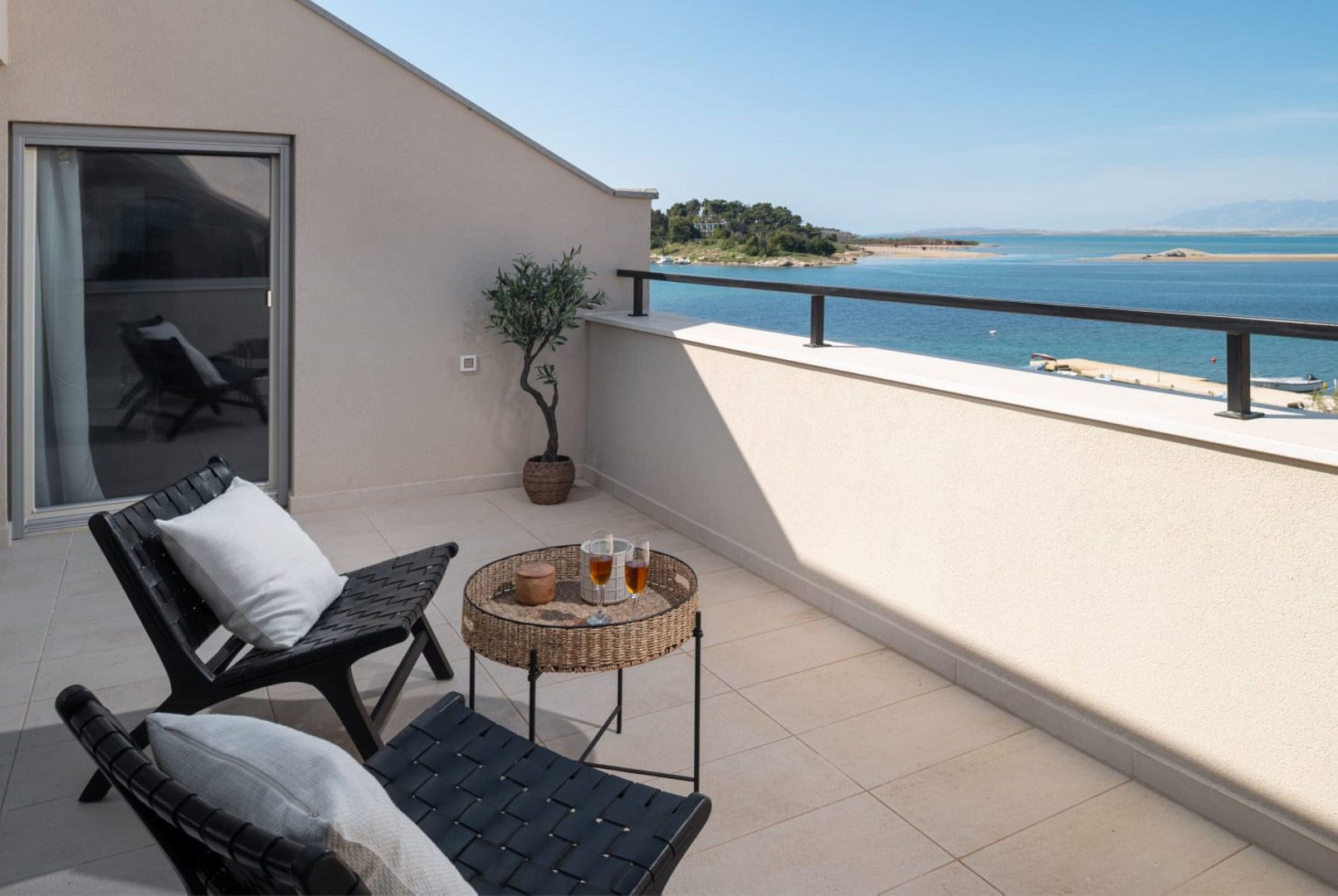 - Prostorná otevřená střešní terasa s výhledem na moře a ostrovy