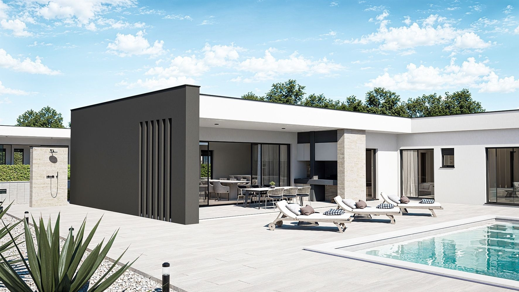 Obývací pokoj a kuchyňský prostor: 44,30 m² Prostorný otevřený prostor s množstvím přirozeného světla, ideální pro setkání a setkání s rodinou: : Vstup do chodby - Příjemný prostor, který vede k srdci obývacího pokoje a kuchyně - otevřený prostor. Venkovní prostor: Prostorný bazén a Upravený dvůr poskytuje pocit soukromí a luxusu, ideální pro dlouhé a teplé dny. Doplňující informace: Nemovitost je v současné době ve výstavbě, což umožňuje potenciálním kupcům přizpůsobit detaily dokončení podle vlastního přání. Pro více informací nebo domluvení prohlídky nás prosím kontaktujte.