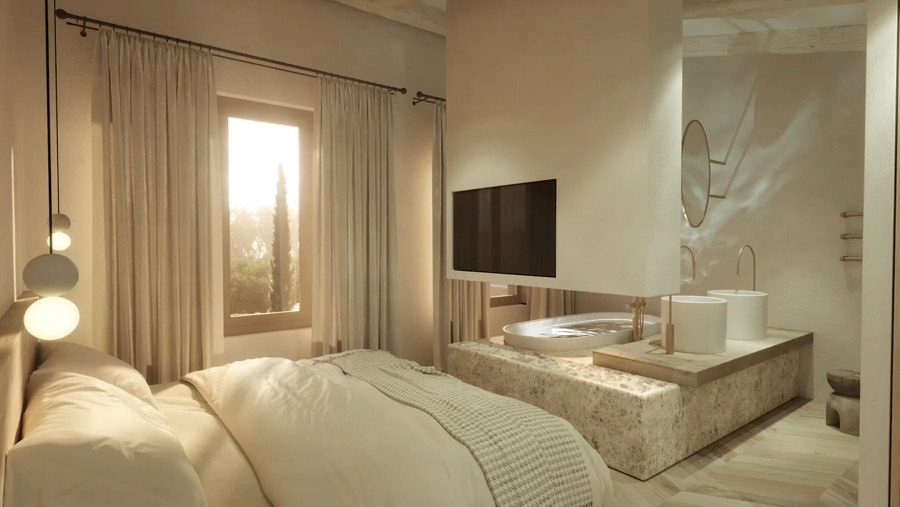 - Hlavní ložnice s koupelnou a terasou