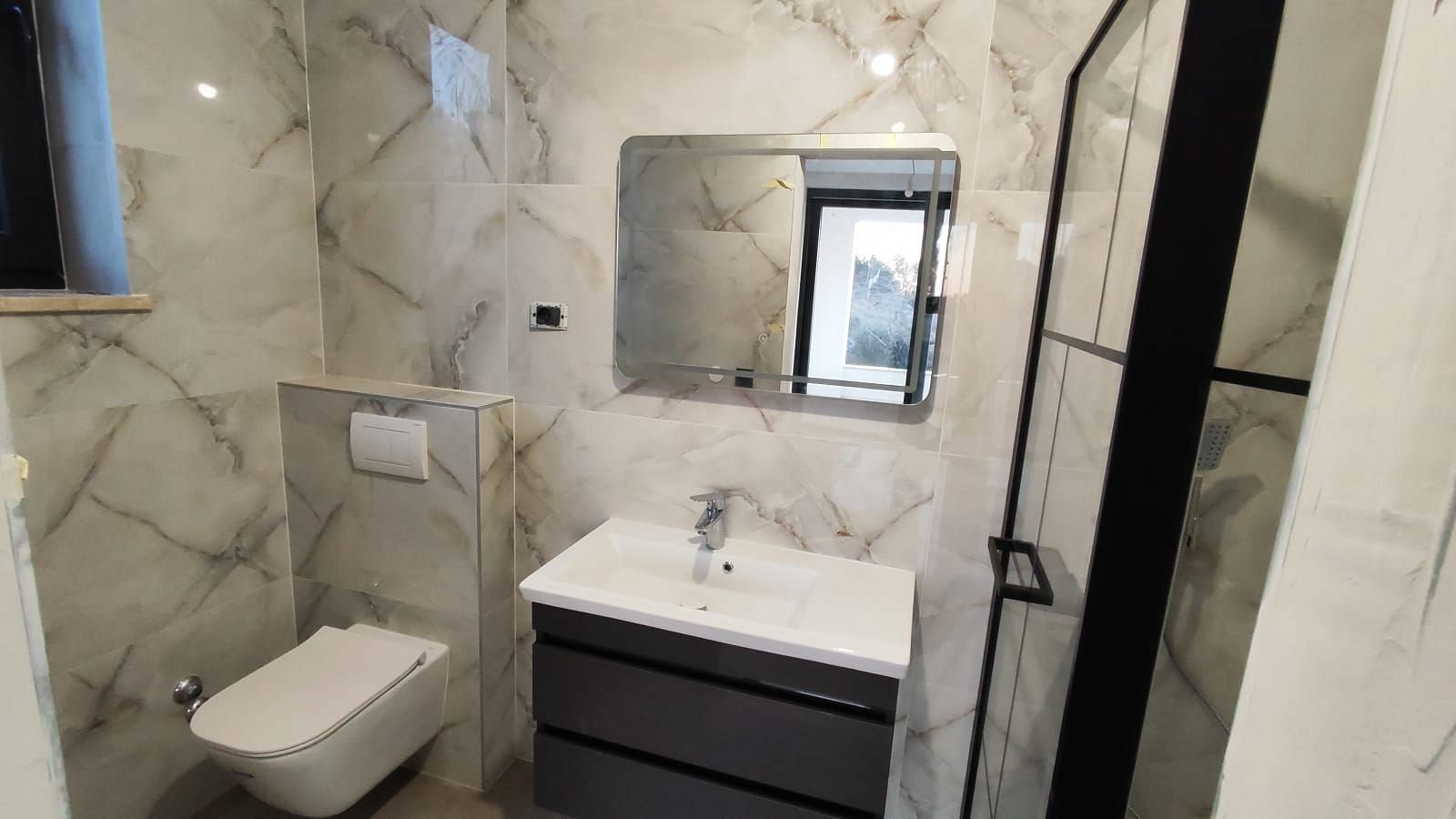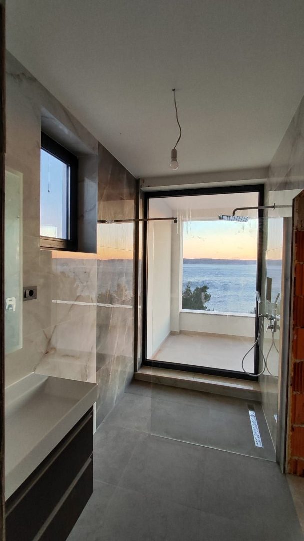 Tato moderní vila, která se nachází v těsné blízkosti moře, je úchvatná svou polohou a elegantním designem. Vila je architektonicky navržena tak, aby poskytovala maximální komfort, luxus a soukromí. Rozlehlé skleněné stěny se táhnou od podlahy ke stropu a umožňují nerušený výhled na moře z téměř každé místnosti v domě. Vila splňuje energetickou náročnost A+. Pro pohodlí je v celém domě instalováno podlahové vytápění a všechny pokoje jsou klimatizovány. Na střeše byly dokončeny veškeré instalace pro instalaci solárních panelů. Dům v současné době prochází finálními dokončovacími pracemi a bude vybavena špičkovými materiály, a to jak v interiéru, tak v exteriéru zahrady a bazénu. Vedle terasy je postaven venkovní grill.