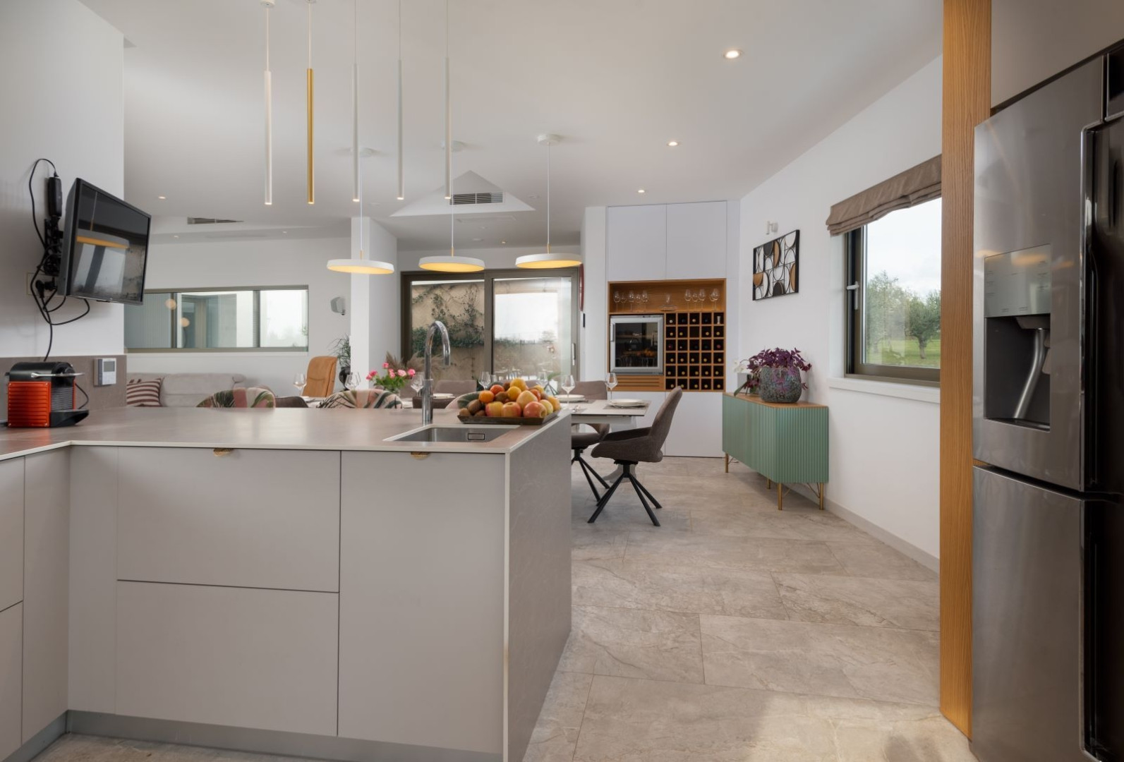 Vila se skládá z kuchyně postavené na míru a s vestavěnými spotřebiči Bosch. Jídelna a velký obývací pokoj 90 m2, ze kterého se vchází na terasu a bazén, čtyři pokoje, každý s vlastní koupelnou a WC, samostatná toaleta.Tři terasy, vnitřní Chill Garden, dvě garáže, které jsou přístupné přes velkou příjezdovou cestu. Vyhřívaný bazén a koupelna s venkovním WC o rozměrech 11x5m. Instalovaný 10 cm fasádní obklad, kvalitní PVC truhlářství s moskytiérami a posuvnými okenicemi. Pro vnitřní pohodu je instalováno podlahové vytápění pomocí tepelných čerpadel, pro chlazení je instalováno stropní větrání a klimatizace, všechny místnosti jsou klimatizovány. Tuto vilu zdobí velká zahrada se čtyřiceti 18letými olivovníky, společenská místnost s pohyblivou pergolou a dětským a basketbalovým hřištěm. Každý detail v této vile dává dokonalou harmonii, přispívá tak k bohatství pozitivní energie a zanechává výjimečný celkový dojem pro všechny osoby ubytované v tomto jedinečném prostoru. Vila se nachází ve velmi klidné lokalitě, obklopená a propojená s přírodou. Smoković je vesnice nacházející se pouze 7 km od Zadaru a pouhých 5 km od letiště Zadar. Pro případné další dotazy a prohlídky jsme k dispozici.