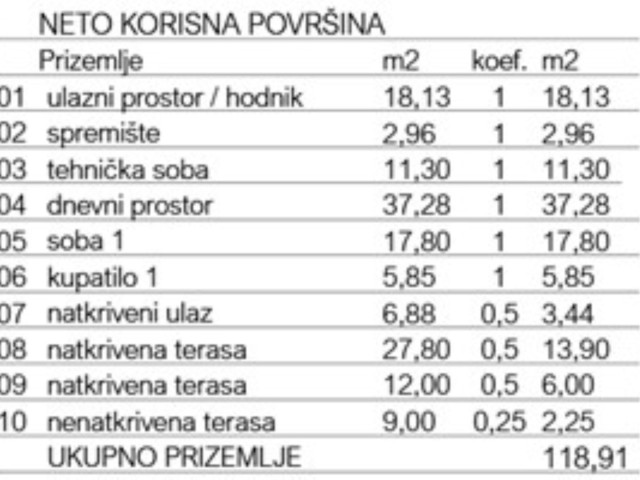- Zastřešený vstup, předsíň s úložným prostorem, otevřený obývací pokoj s kuchyní a jídelnou, koupelna, WC, ložnice.
