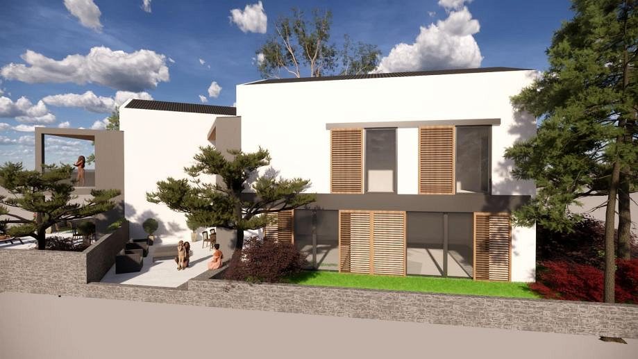 Prodej stavebního pozemku 756 m2 se stavebním povolením na výstavbu tří bytových jednotek o čisté užitné ploše 122, 116 a 124 m2.