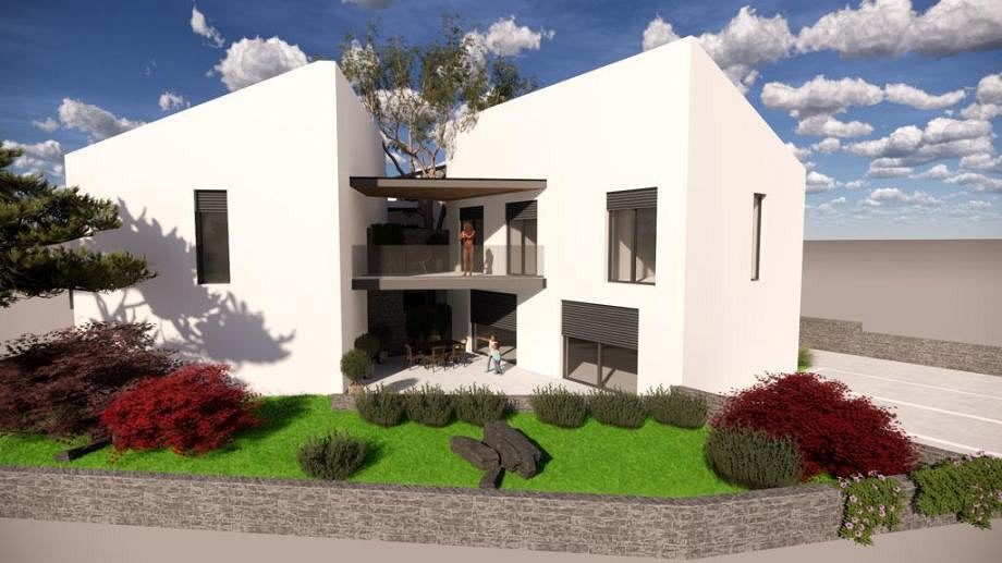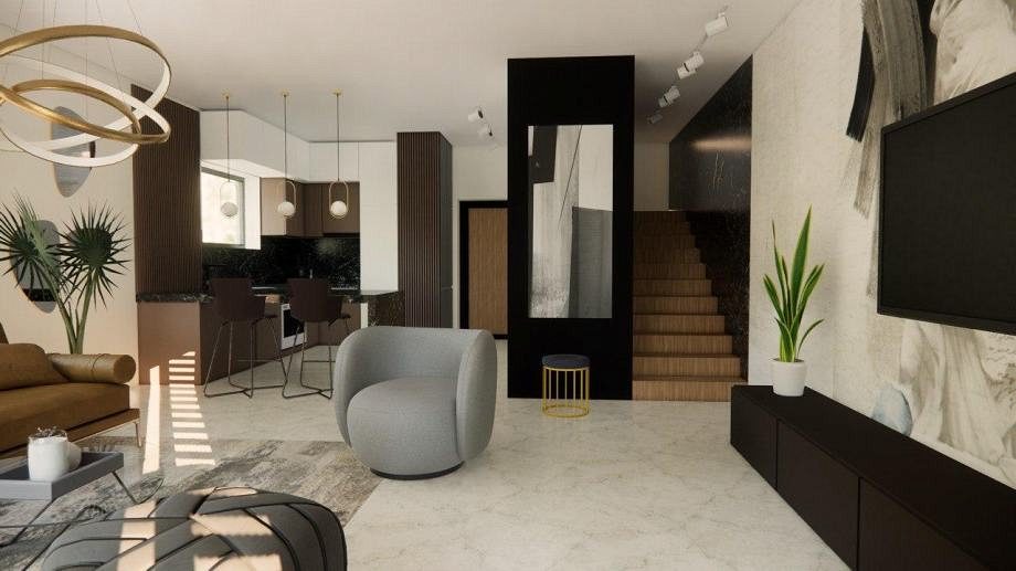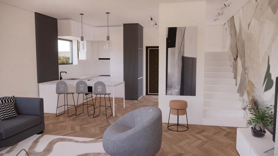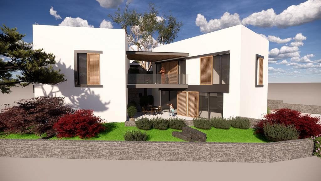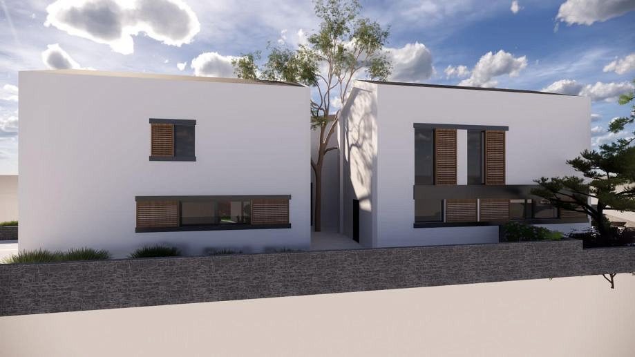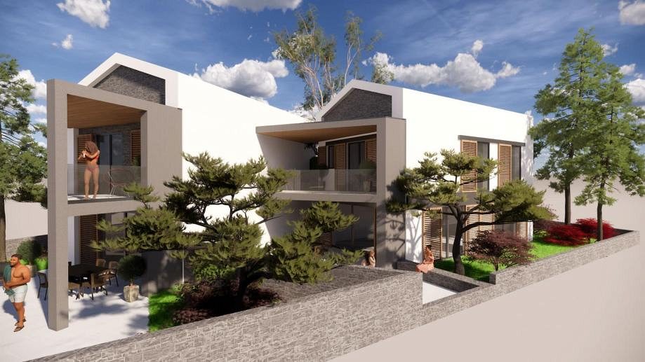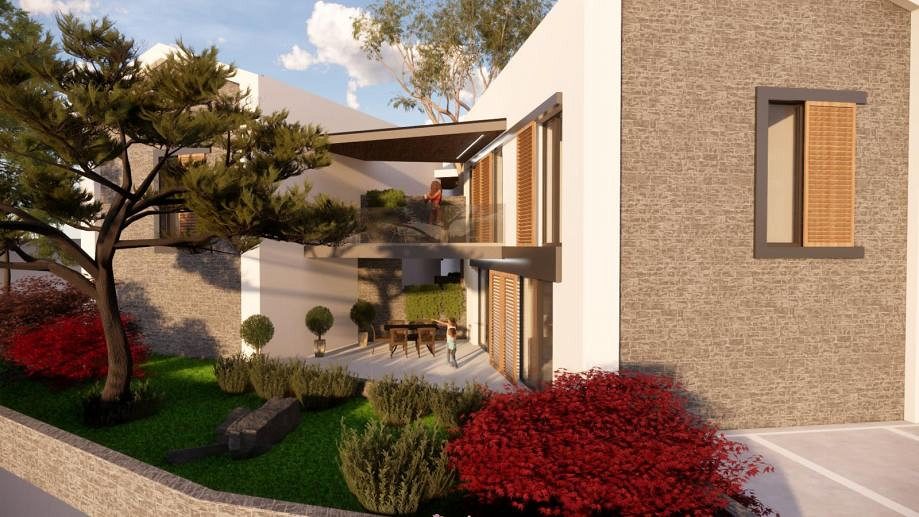 Pozemek je velmi atraktivní díky své blízkosti moře. Byly zde navrženy krásné moderní rekreační domy spojené s terasami, jen 500 metrů od moře. Každý byt, tzn. dům tvoří obytný prostor v přízemí, kde se nachází kuchyně, jídelna, obývací pokoj a WC, v patře jsou tři ložnice se dvěma koupelnami. Každý byt má v přízemí a v patře krytou terasu a v přízemí části nekryté terasy. Ke každému bytu náleží dvě parkovací stání a dvůr.