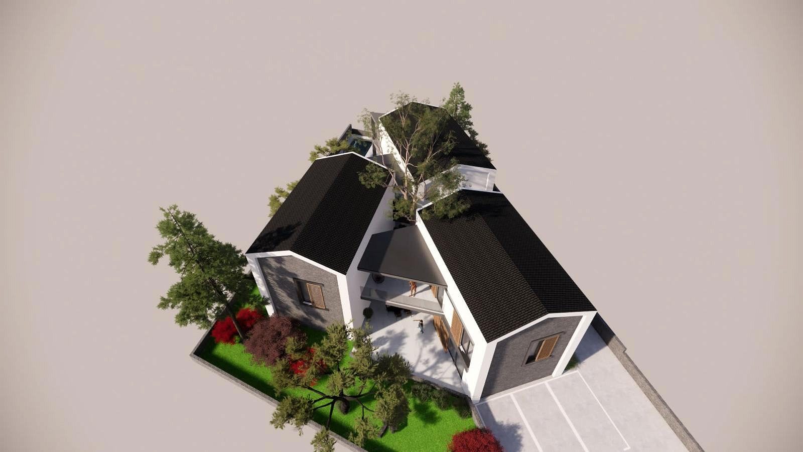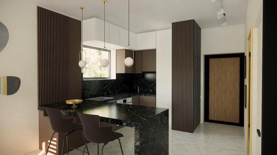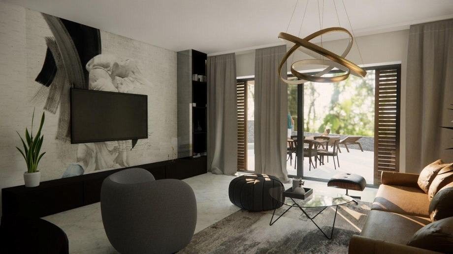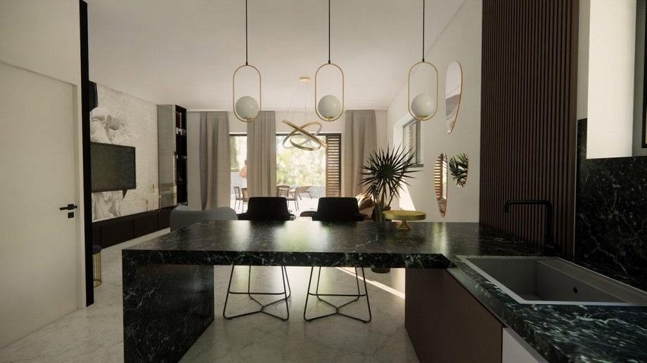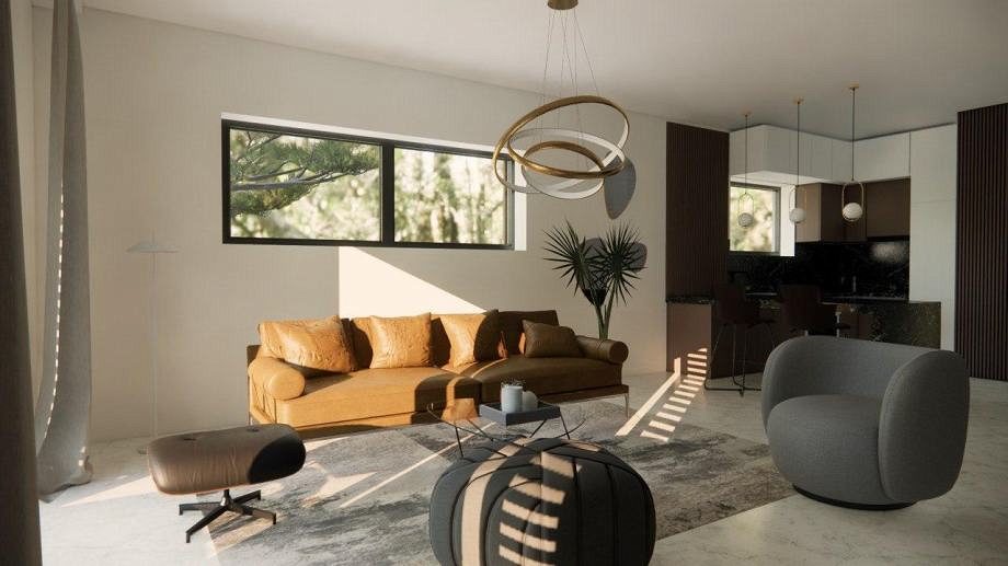 Pozemek je velmi atraktivní díky své blízkosti moře. Byly zde navrženy krásné moderní rekreační domy spojené s terasami, jen 500 metrů od moře. Každý byt, tzn. dům tvoří obytný prostor v přízemí, kde se nachází kuchyně, jídelna, obývací pokoj a WC, v patře jsou tři ložnice se dvěma koupelnami. Každý byt má v přízemí a v patře krytou terasu a v přízemí části nekryté terasy. Ke každému bytu náleží dvě parkovací stání a dvůr.