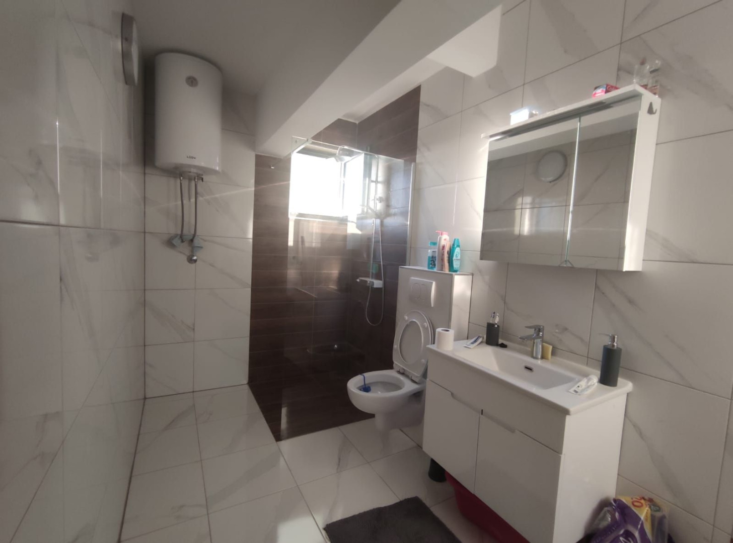Nabízíme zařízený dům v klidné části obce Sukošan. Dům je dvoupodlažní, přízemí a první patro s celkovou obytnou plochou 220 m2. V přízemí je byt a garáž. Byt v přízemí je zařízený a skládá se z kuchyně, jídelny, obývacího pokoje, dvou ložnic, koupelny, WC, komory a velké terasy. V prvním patře jsou dva jednopokojové zařízené apartmány s prostornými terasami. Dům má výbornou izolaci, k vytápění a chlazení se používají klimatizace.