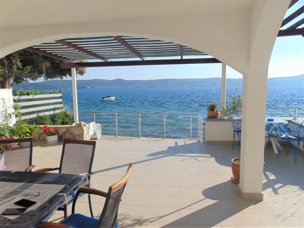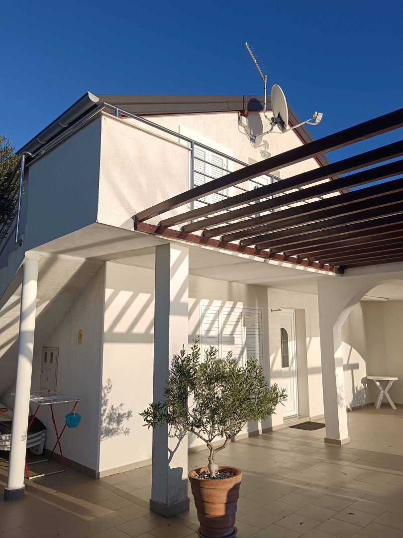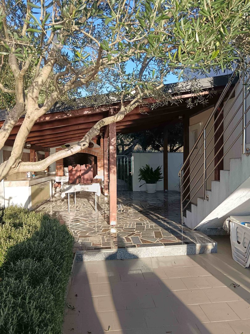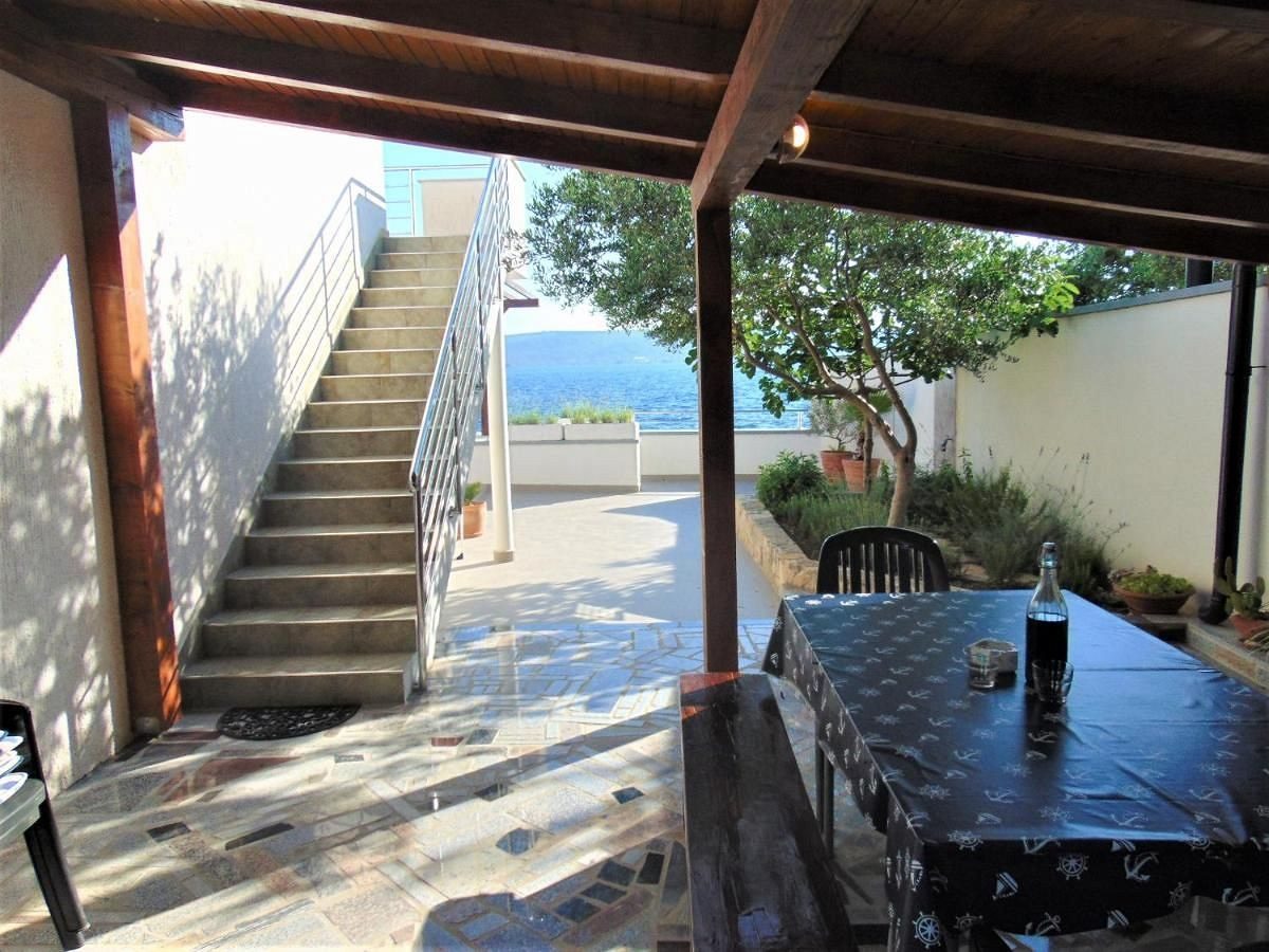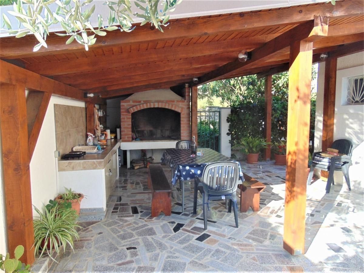 Dům se skládá ze suterénu, přízemí a prvního patra. V přízemí se nachází moderní apartmán se dvěma ložnicemi, kuchyní, obývacím pokojem, koupelnou a prostornou terasou s nádherným výhledem na moře. V prvním patře je další dvoupokojový byt s terasou, na kterou se lze dostat po venkovním schodišti. Dále je v přízemí krytá letní kuchyně s grilem a jídelním koutem. Suterén je využíván jako sklad, přičemž vedle je garáž, kterou lze využít jako další sklad.