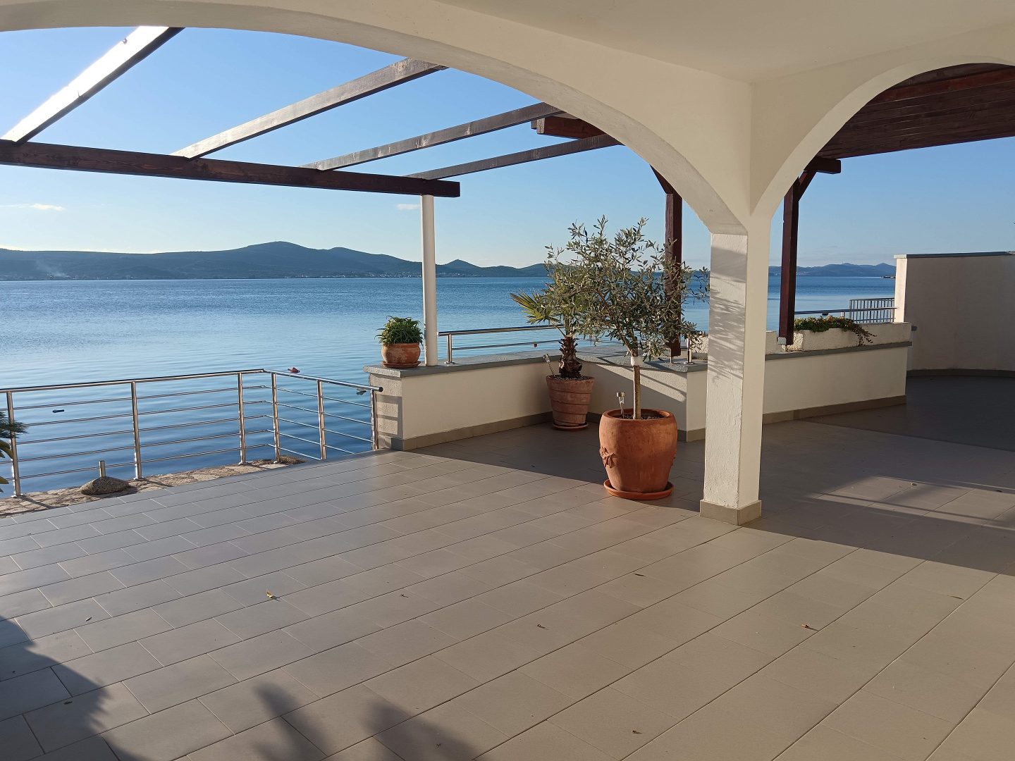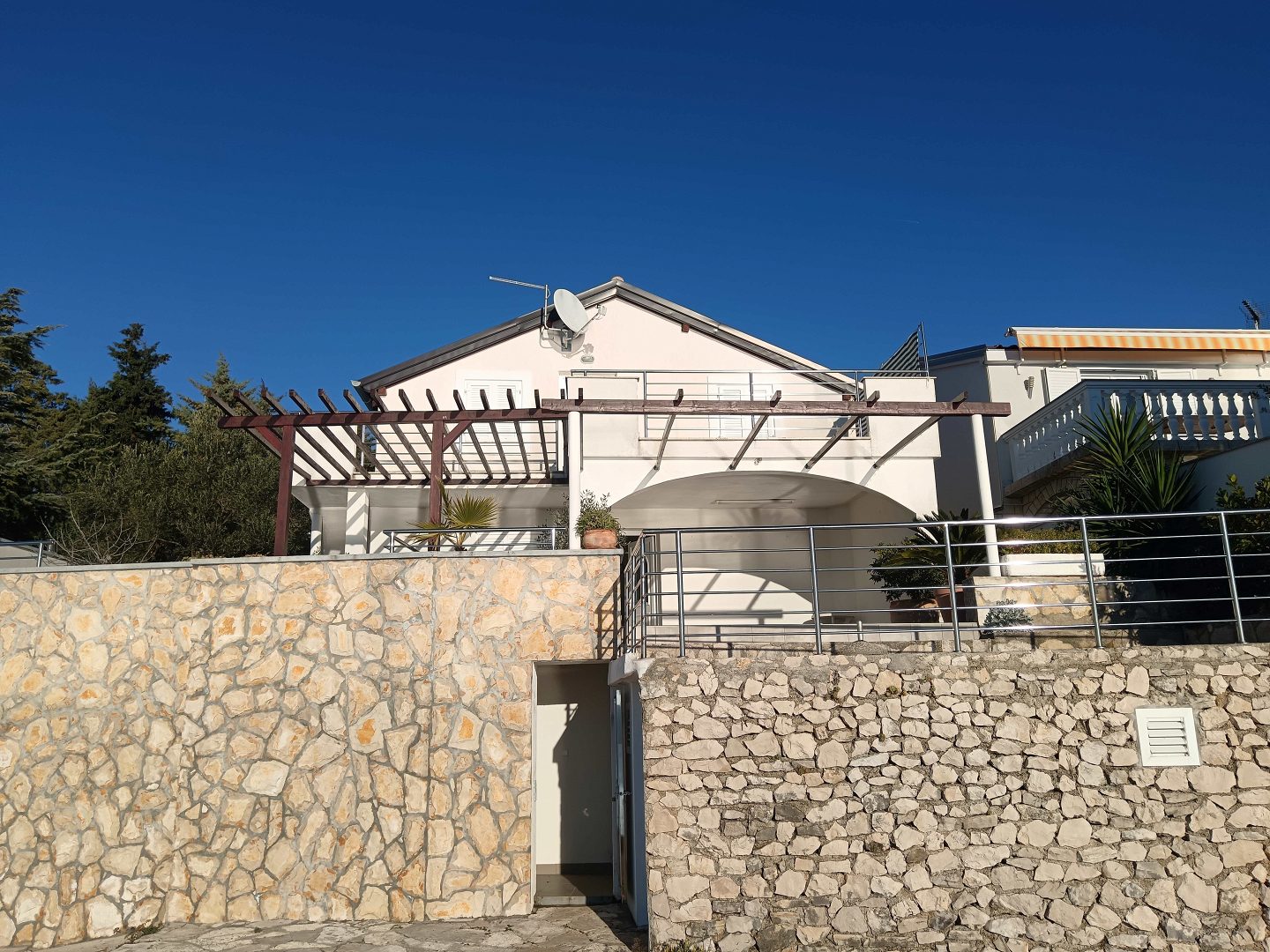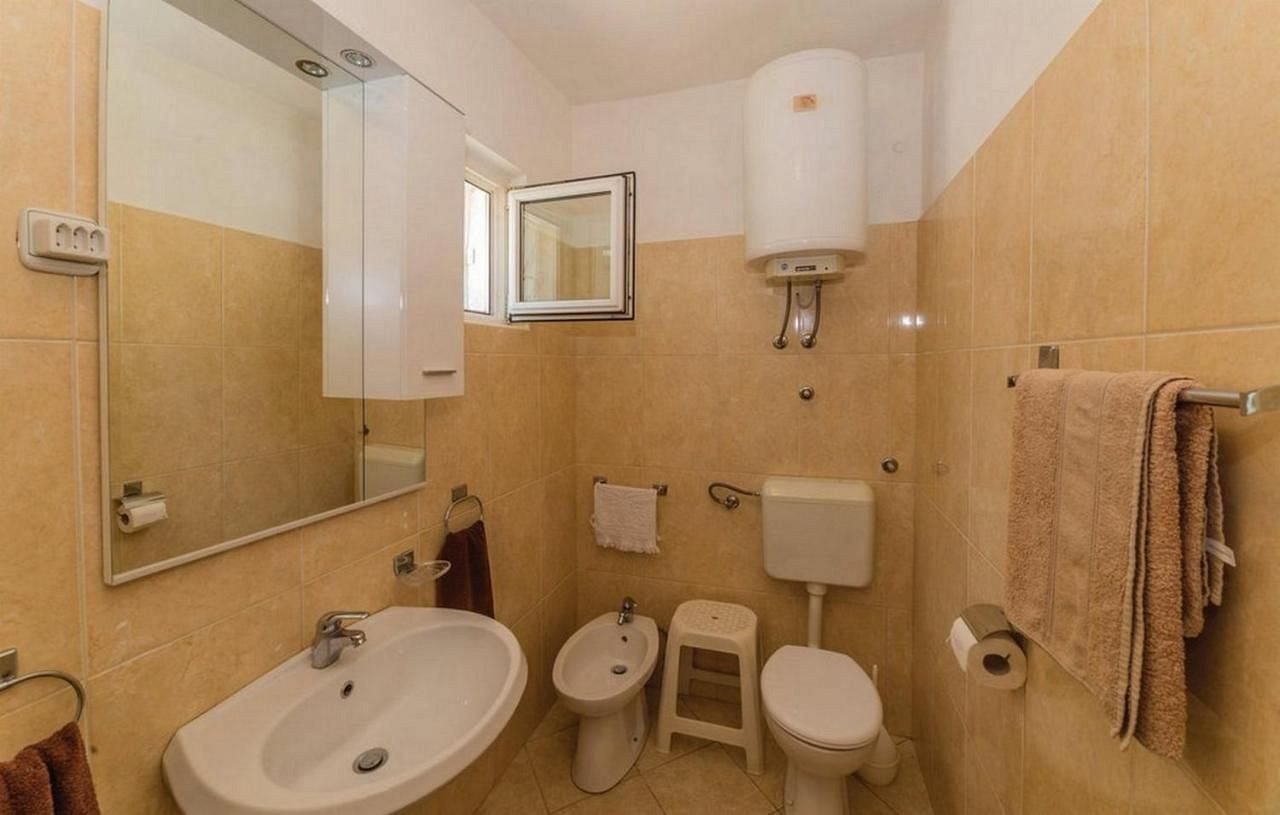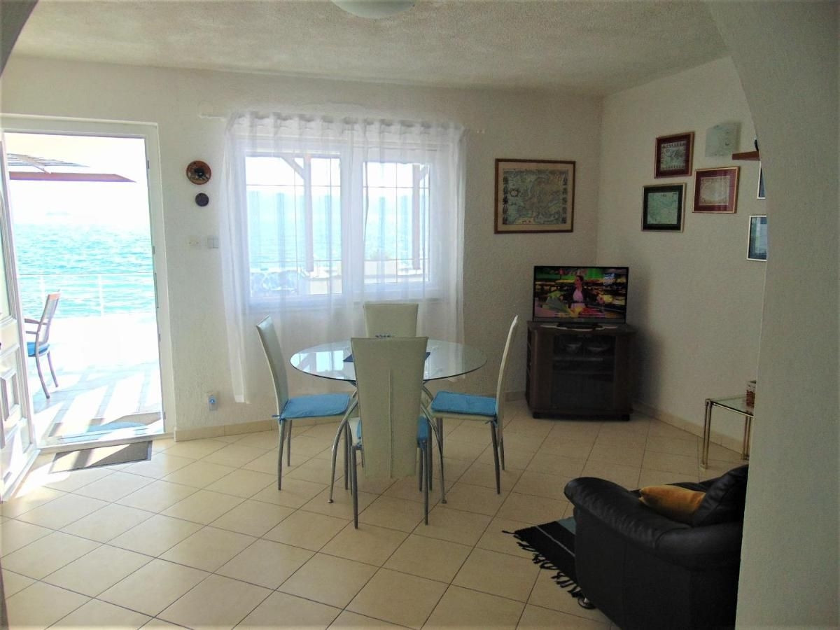 Dům se skládá ze suterénu, přízemí a prvního patra. V přízemí se nachází moderní apartmán se dvěma ložnicemi, kuchyní, obývacím pokojem, koupelnou a prostornou terasou s nádherným výhledem na moře. V prvním patře je další dvoupokojový byt s terasou, na kterou se lze dostat po venkovním schodišti. Dále je v přízemí krytá letní kuchyně s grilem a jídelním koutem. Suterén je využíván jako sklad, přičemž vedle je garáž, kterou lze využít jako další sklad.