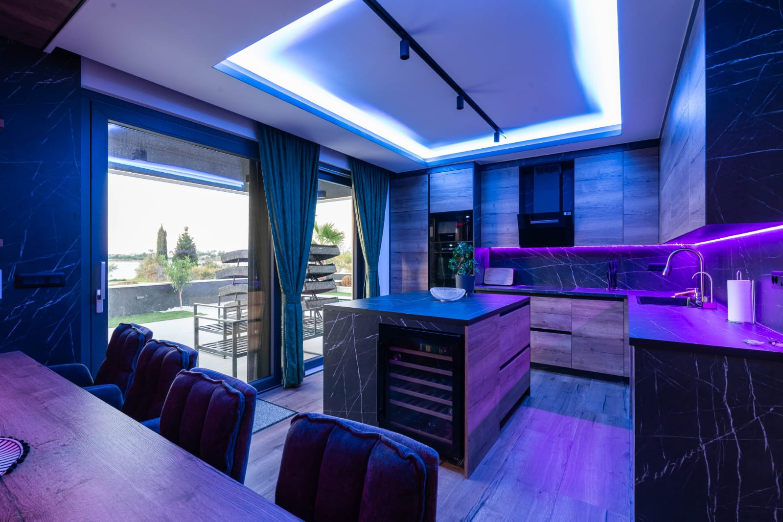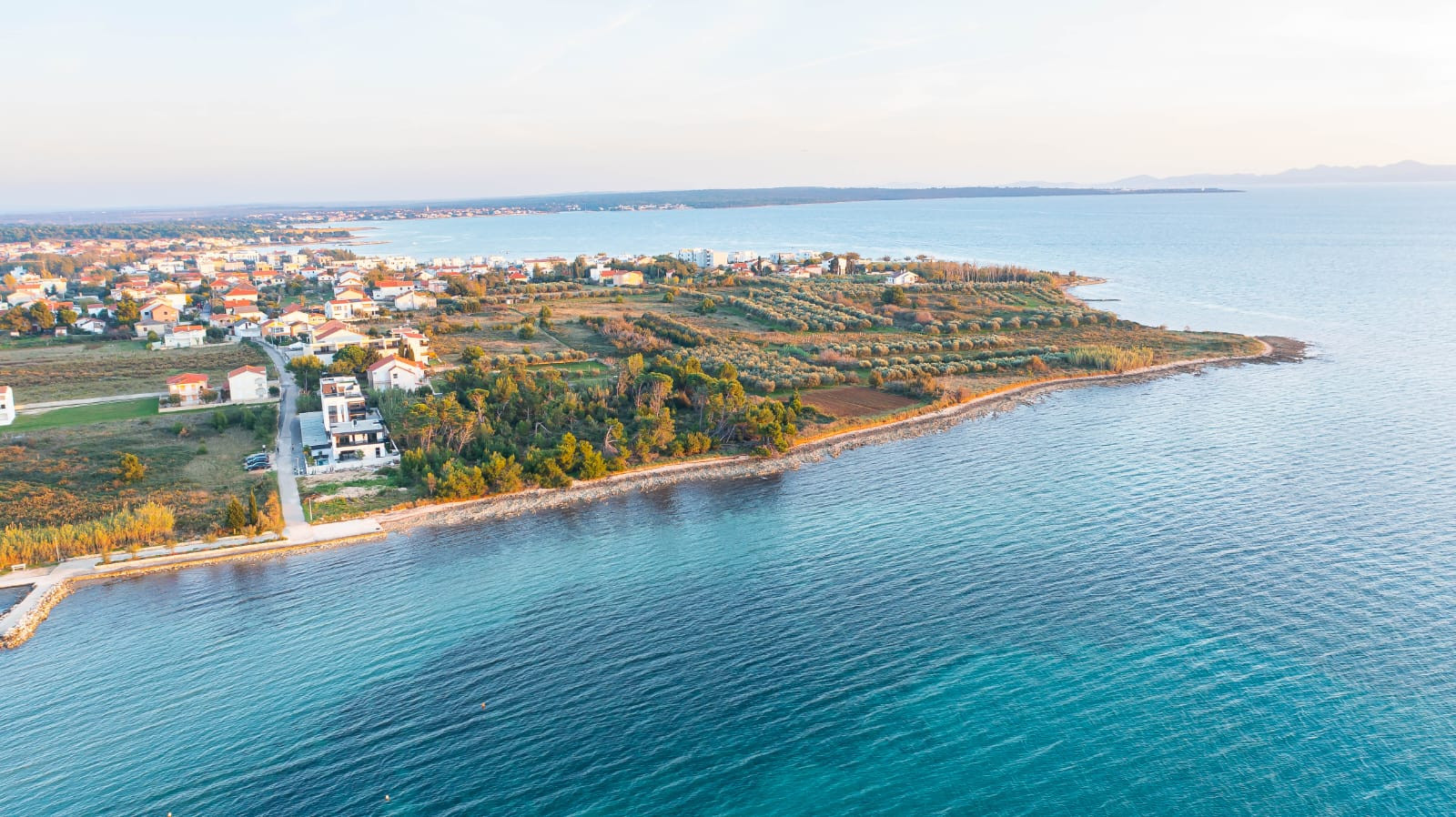 Krásná, nově postavená moderní vila se 4 ložnicemi, 4 koupelnami, kuchyní, jídelnou, obývacím pokojem, terasou, vyhřívaným bazénem, saunou, garáží. Plně zařízená, tepelné čerpadlo, podlahové vytápění, klimatizace, cca 1200 m2 pozemku, v první řadě u moře. Na pozemcích zleva i zprava je výstavba zakázána.