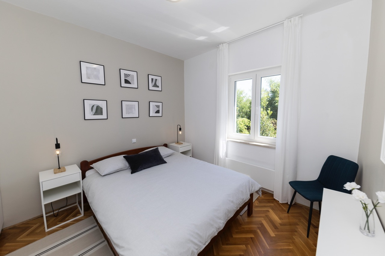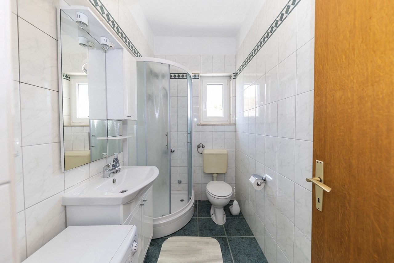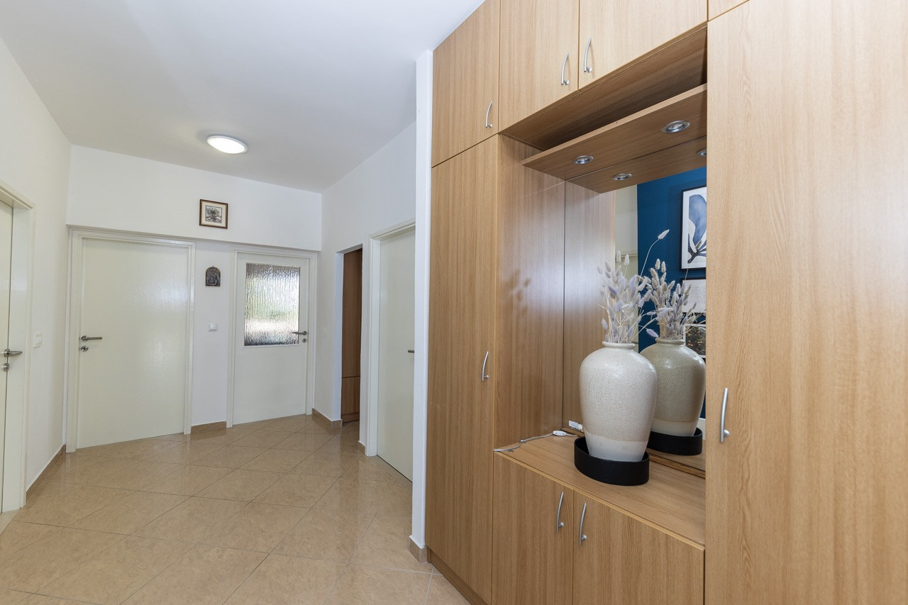 Dům se skládá z celkem 3 bytů a prostorného sklepa, uvnitř kterého si můžete vytvořit ideální pokoj pro relaxaci a potěšení. Dům má celkovou čistou obytnou plochu 266 m2 a skládá se ze čtyřpokojového bytu v přízemí, kde jsou 3 ložnice, koupelny, otevřené kuchyně, obývacího pokoje a jídelny a dvou teras s velkolepým výhled na moře!