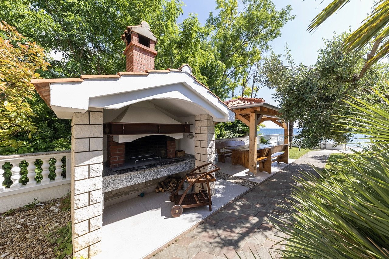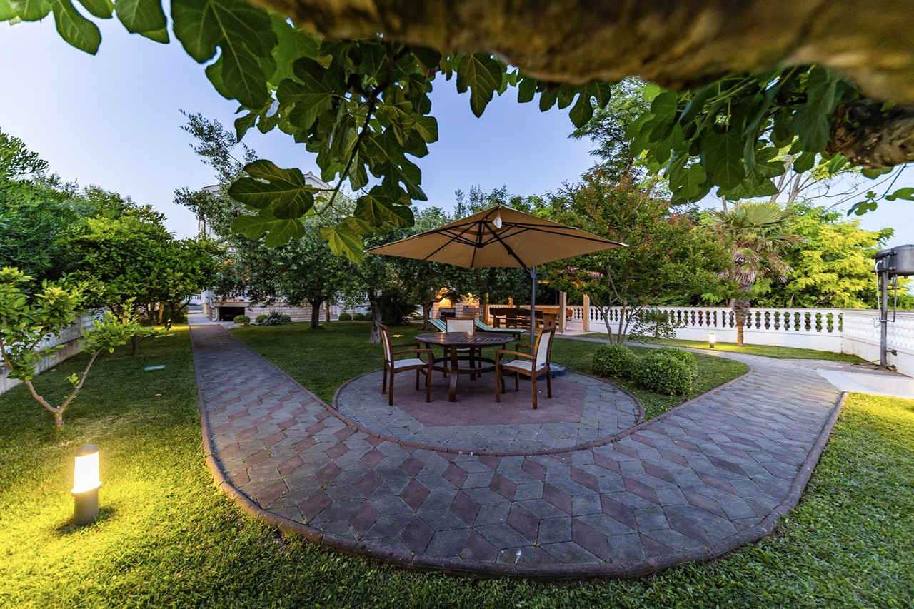 Zvláště okouzlující je prostorná zahrada o rozloze 638 m2, uvnitř které najdeme letní kuchyni s velkým kamenným komínem a baldachýnem s jídelním koutem, prostor na opalování, odpočinkovou část a zahradu bohatou na středomořské rostliny. Rozhodně bychom však měli zdůraznit vlastní schodiště pokryté bračským kamenem, které nás vede z naší krásné zahrady k moři jen pár kroků odtud. To je něco, čím se může pochlubit jen málo nemovitostí v 1. řadě k moři.?Dům má také vlastní parkoviště pro několik aut.?