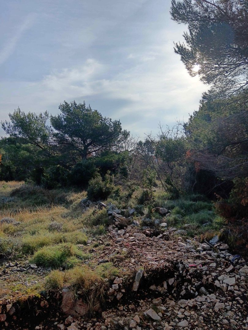 Pozemek má rozlohu 428m2, nachází se v klidné části obce cca 700m od moře a pláže. Přípojky elektřiny, městského vodovodu a kanalizace jsou na pozemku.