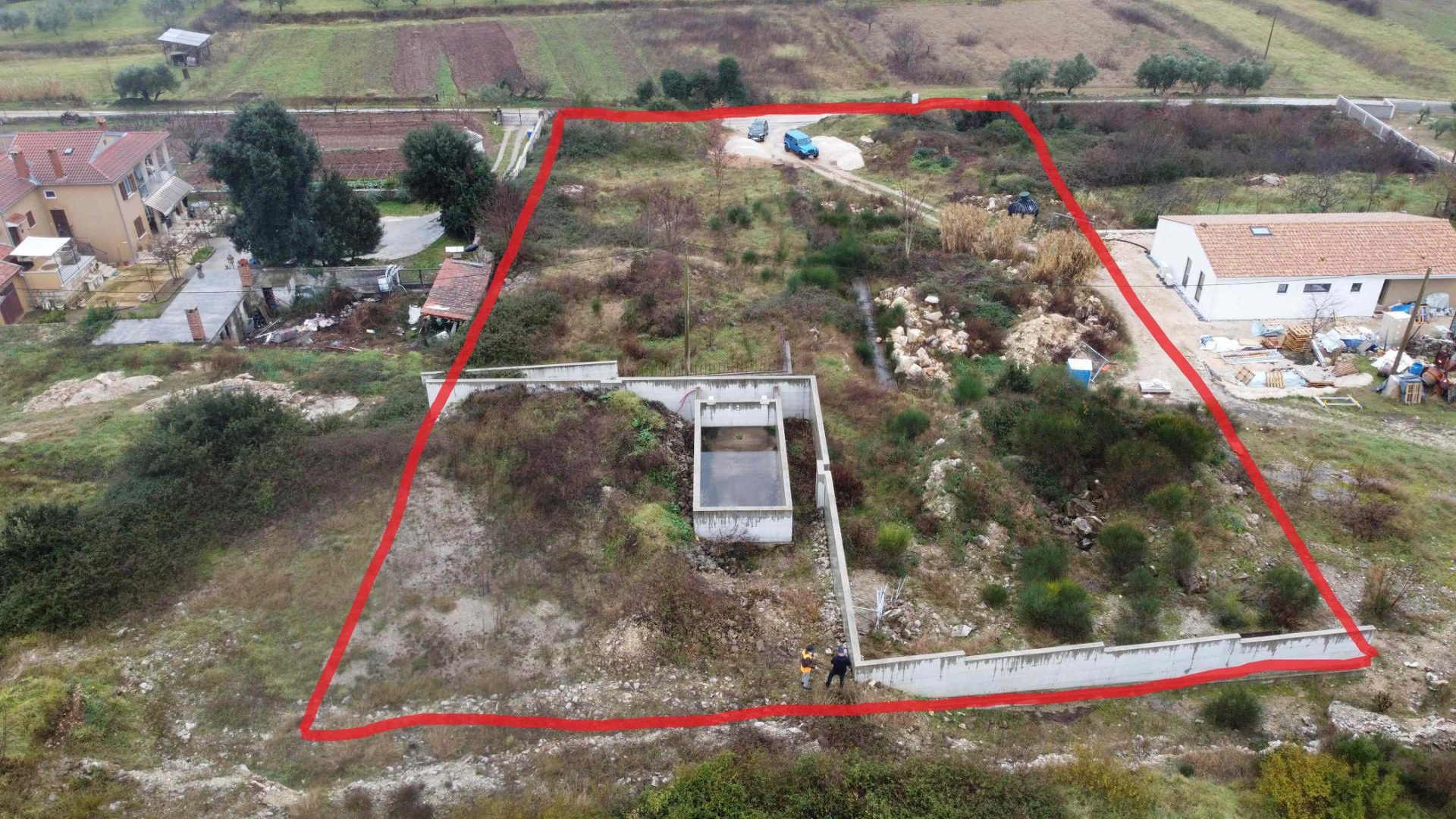 Na prodej výjimečný pozemek o celkové ploše 4.223 m² s panoramatickým výhledem na moře. Pozemek je rozparcelován na čtyři části s projekty pro čtyři stavby (dvě přízemní a dvě patrové vily s bazény). Stavby mají vydané stavební povolení (vypršelo, lze obnovit rychlým postupem).