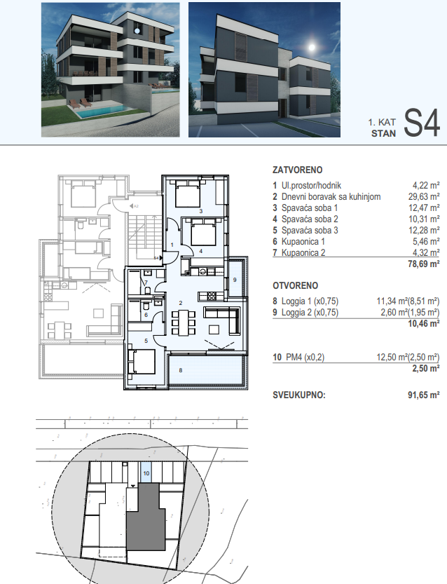 Jedná se o prodej třípokojového bytu, označení S4 o rozloze 91,65 m2. Novostavba byla ukončena v koncem roku 2023.