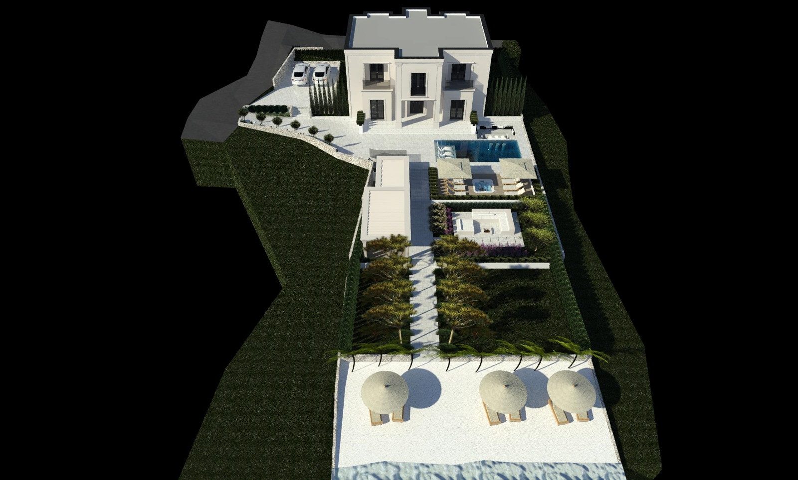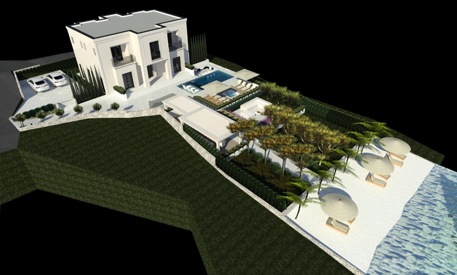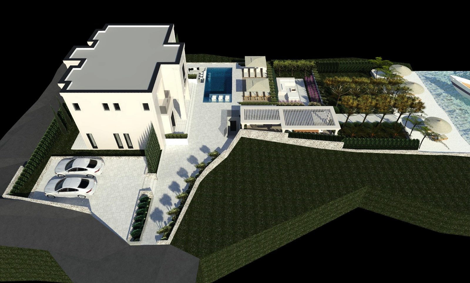 Pozemek má celkovou plochu 1157 m² a mírný svah, který zajistí úchvatný výhled na moře z každé části vily.